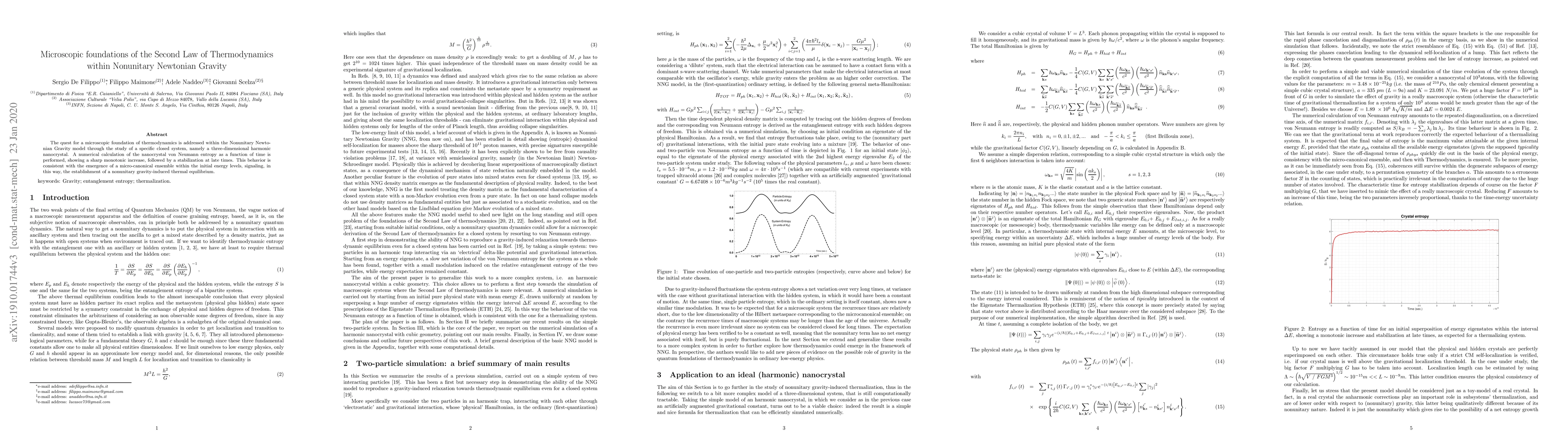 This paper explores the microscopic basis of the Second Law of Thermodynamics in the context of Nonunitary Newtonian Gravity by analyzing a three-dimensional harmonic nanocrystal. The study reveals a monotonic increase in the nanocrystal's von Neumann entropy, indicating the emergence of a micro-canonical ensemble and a gravity-induced thermal equilibrium.