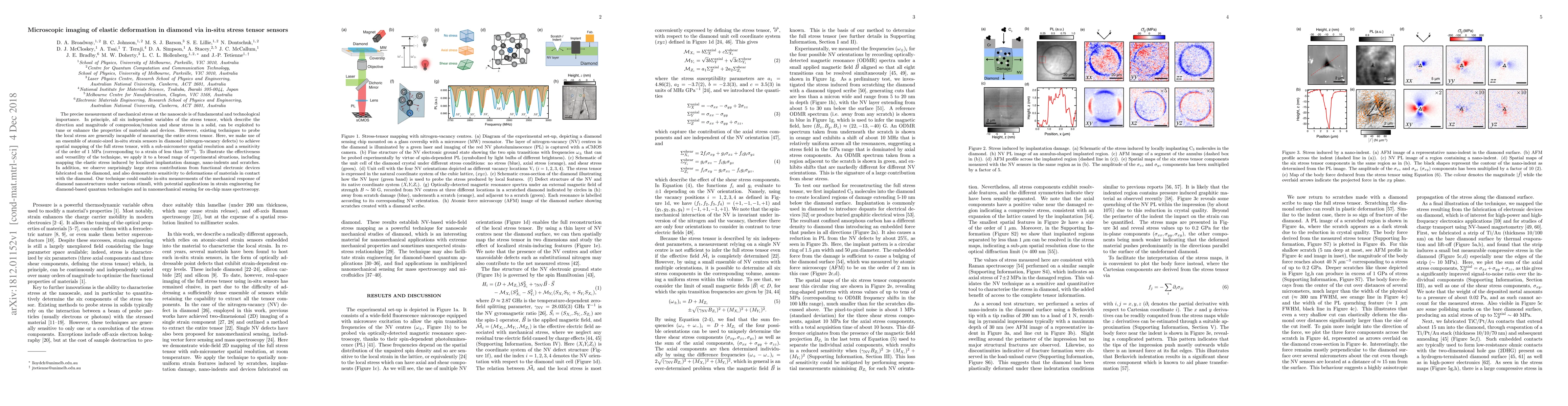 This paper presents a novel method using nitrogen-vacancy defects in diamond to measure the full stress tensor at the nanoscale, achieving sub-micrometer resolution and sensitivity of 1 MPa. The technique is demonstrated through various applications, including mapping stress from implantation damage and electronic devices, highlighting its potential for strain engineering and nanomechanical sensing.