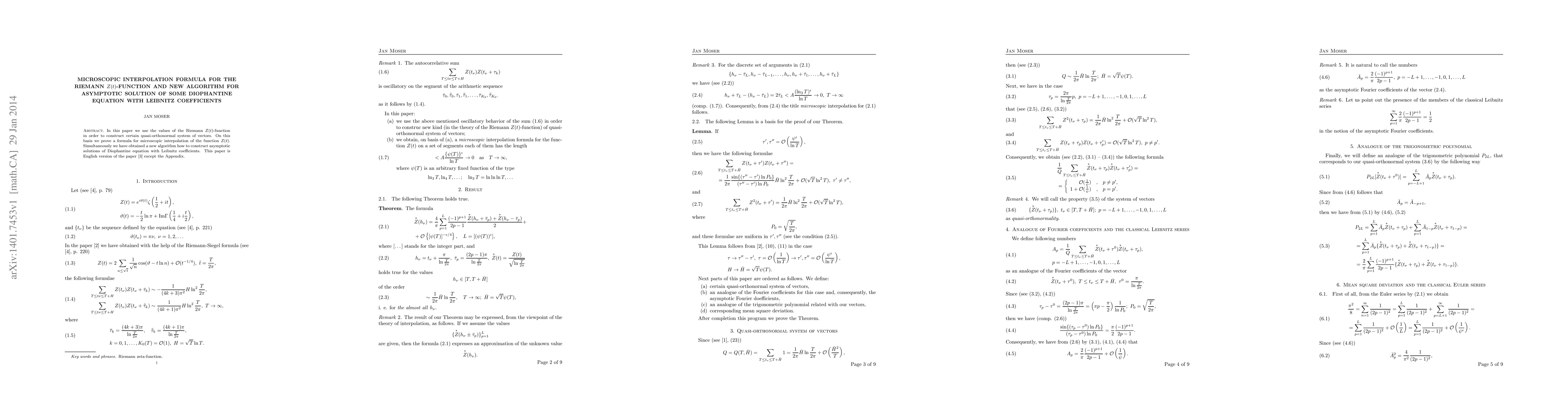 In this paper we use the values of the Riemann $Z(t)$-function in order to construct certain quasi-orthonormal system of vectors. On this basis we prove a formula for microscopic interpolation of the function $Z(t)$. Simultaneously we have obtained a new algorithm how to construct asymptotic solutions of Diophantine equation with Leibnitz coefficients. This paper is English version of the paper \cite{3} except the Appendix.