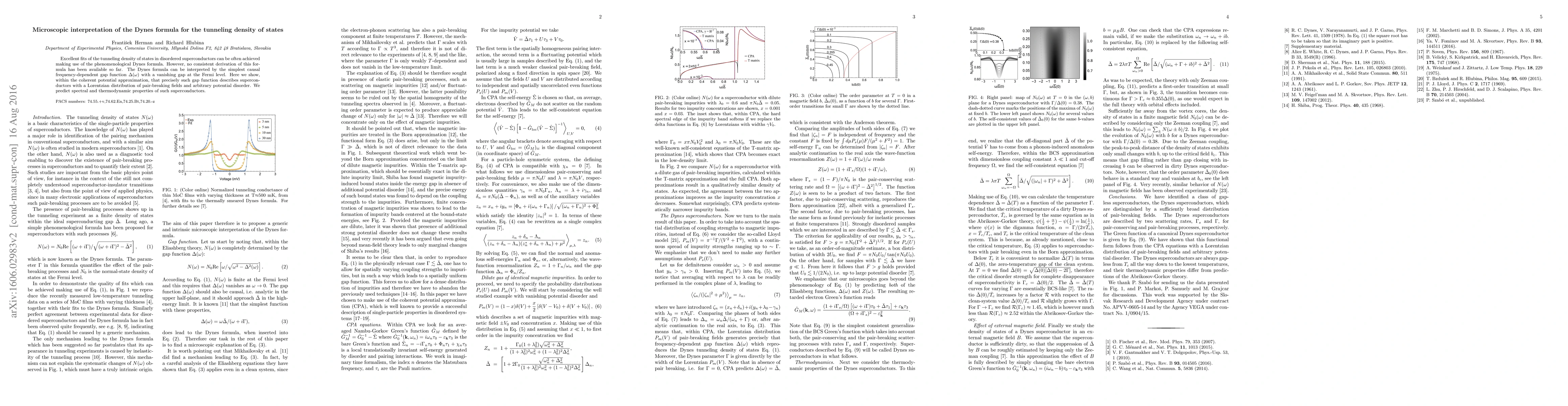 Excellent fits of the tunneling density of states in disordered superconductors can be often achieved making use of the phenomenological Dynes formula. However, no consistent derivation of this formula has been available so far. The Dynes formula can be interpreted by the simplest causal frequency-dependent gap function $\Delta(\omega)$ with a vanishing gap at the Fermi level. Here we show, within the coherent potential approximation, that precisely such gap function describes superconductors with a Lorentzian distribution of pair-breaking fields and arbitrary potential disorder. We predict spectral and thermodynamic properties of such superconductors.