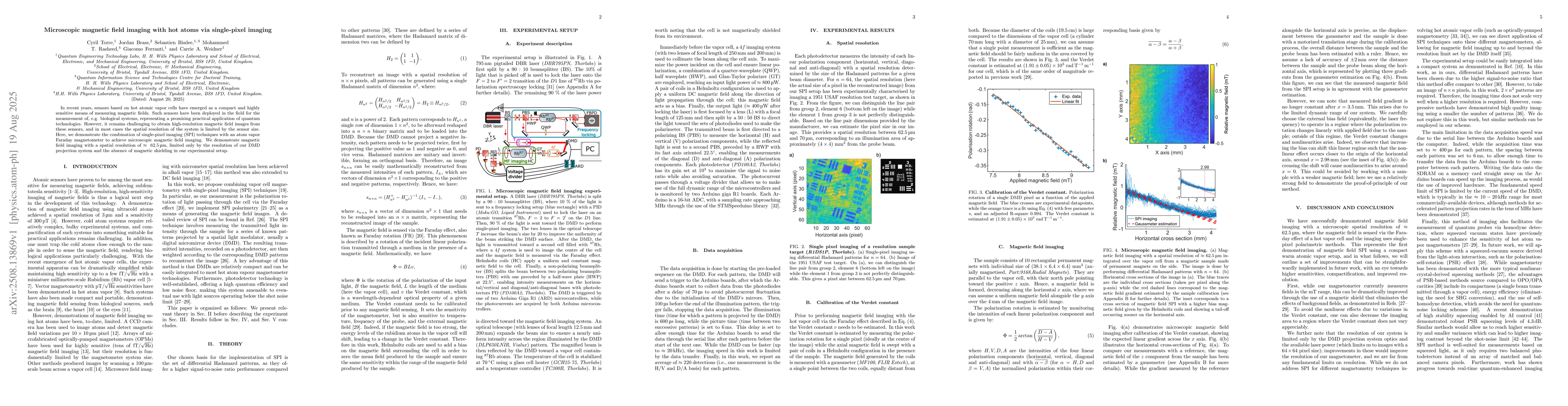 In recent years, sensors based on hot atomic vapor cells have emerged as a compact and highly sensitive means of measuring magnetic fields. Such sensors have been deployed in the field for the measurement of, e.g. biological systems, representing a promising practical application of quantum technologies. However, it remains challenging to obtain high-resolution magnetic field images from these sensors, and in most cases the spatial resolution of the system is limited by the sensor size. Here, we demonstrate the combination of single-pixel imaging (SPI) techniques with an atom vapor. Faraday magnetometer to achieve microscopic magnetic field imaging. We demonstrate magnetic field imaging with a spatial resolution of $\approx~62.5\mu m$, limited only by the resolution of our DMD projection system and the absence of magnetic shielding in our experimental setup.