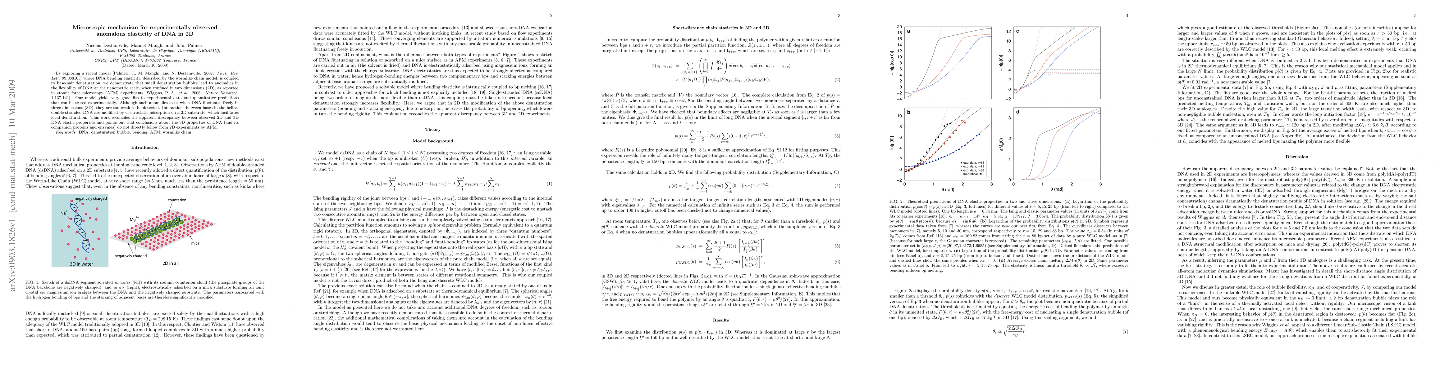 This research explains how DNA's unusual elasticity in 2D, observed in AFM experiments, arises from small denaturation bubbles influenced by 2D confinement. The study uses a modified wormlike chain model, fitting well to experimental data and suggesting that 2D observations don't directly apply to 3D DNA properties.