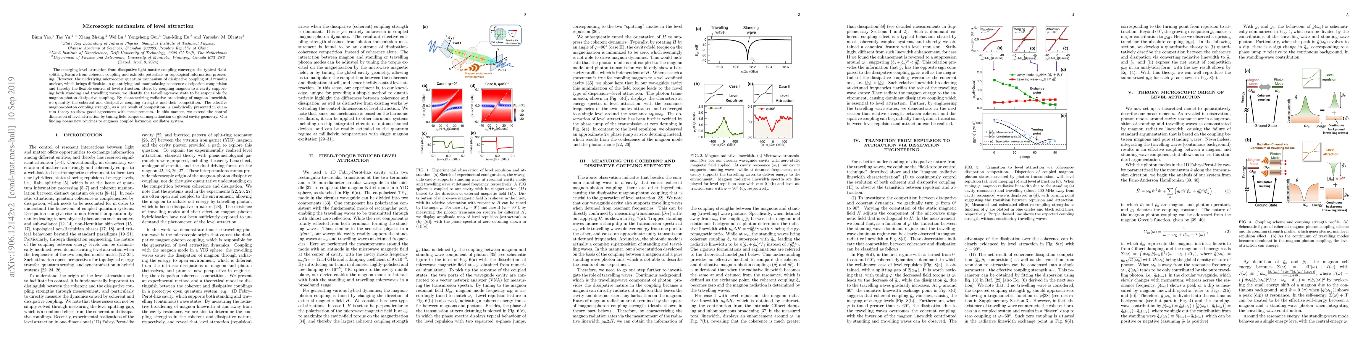 This paper investigates the microscopic mechanism behind level attraction in dissipative light-matter coupling, identifying travelling-wave states as responsible for magnon-photon interaction. It quantifies the competition between coherent and dissipative coupling, presenting a theoretical model that aligns with experimental measurements, thus extending control over level attraction.