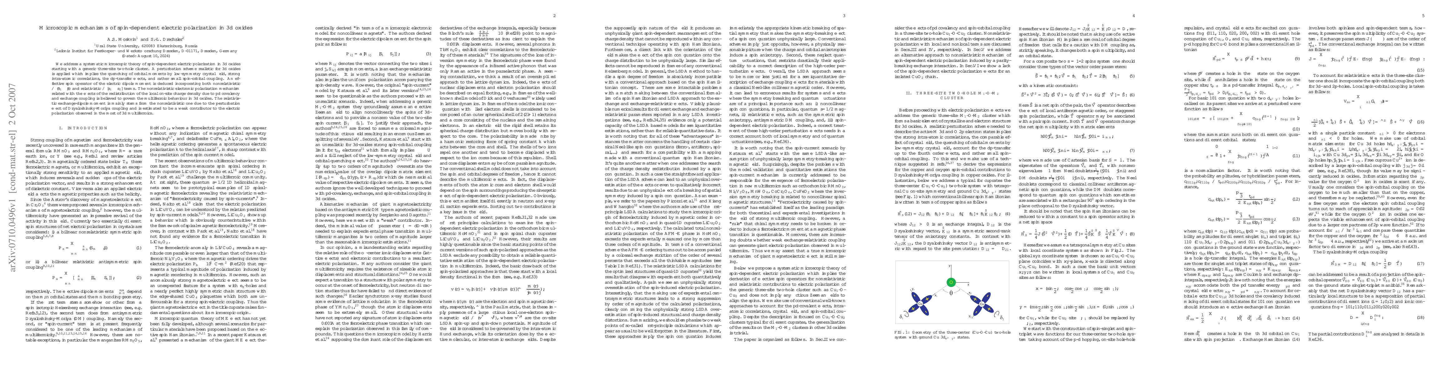 This paper develops a microscopic theory for spin-dependent electric polarization in 3d oxides, focusing on a three-site two-hole cluster model. It finds that nonrelativistic electronic polarization, driven by local charge density redistribution and exchange coupling, primarily governs multiferroic behavior, while relativistic effects contribute weakly.