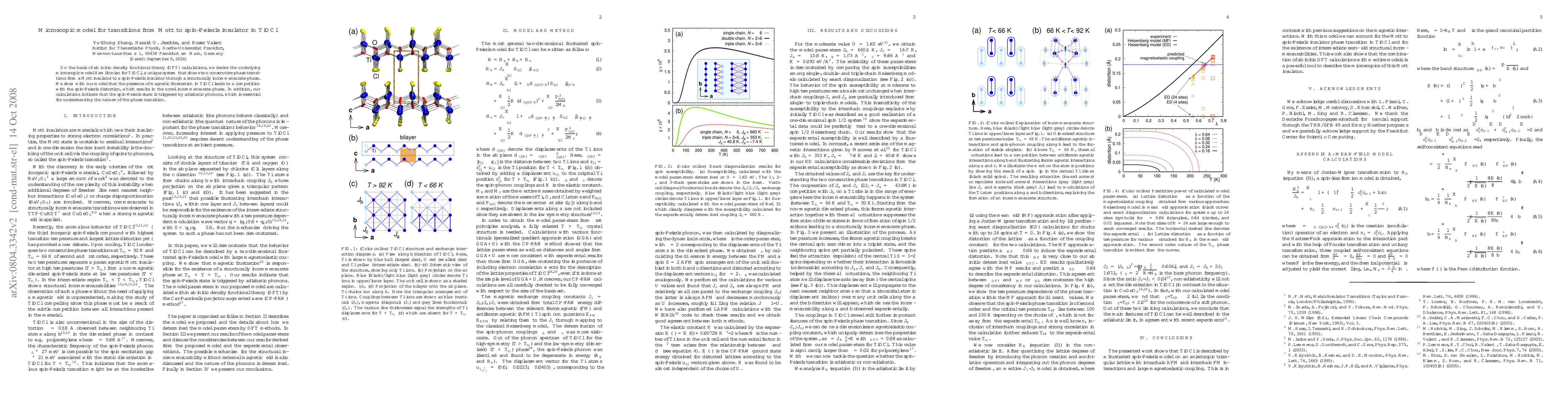 The study derives a microscopic model Hamiltonian for TiOCl using ab initio DFT, revealing its transitions from a Mott insulator to a spin-Peierls insulator via an incommensurate phase, highlighting magnetic frustration's role and the influence of adiabatic phonons in the spin-Peierls state.