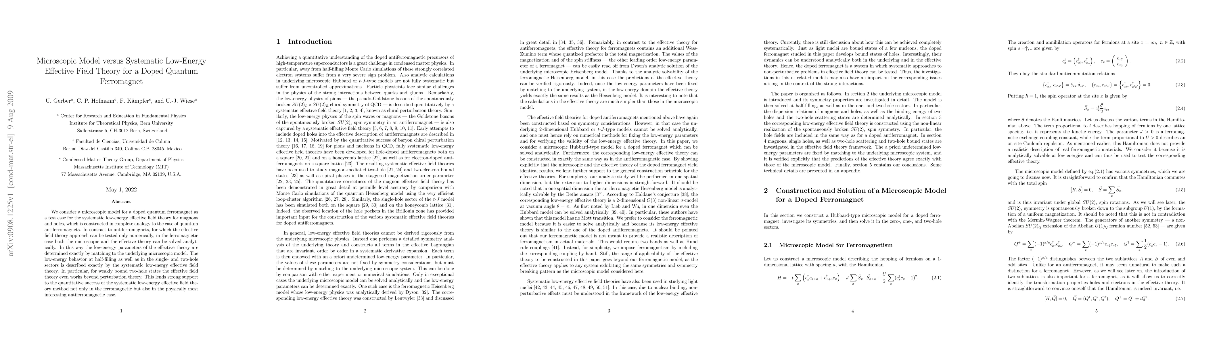 This paper compares a microscopic model for a doped quantum ferromagnet with a systematic low-energy effective field theory, showing exact analytical solutions for both. The study confirms the effectiveness of the low-energy effective field theory in describing the behavior of magnons and holes, even for weakly bound two-hole states, thereby supporting its applicability to antiferromagnetic systems.