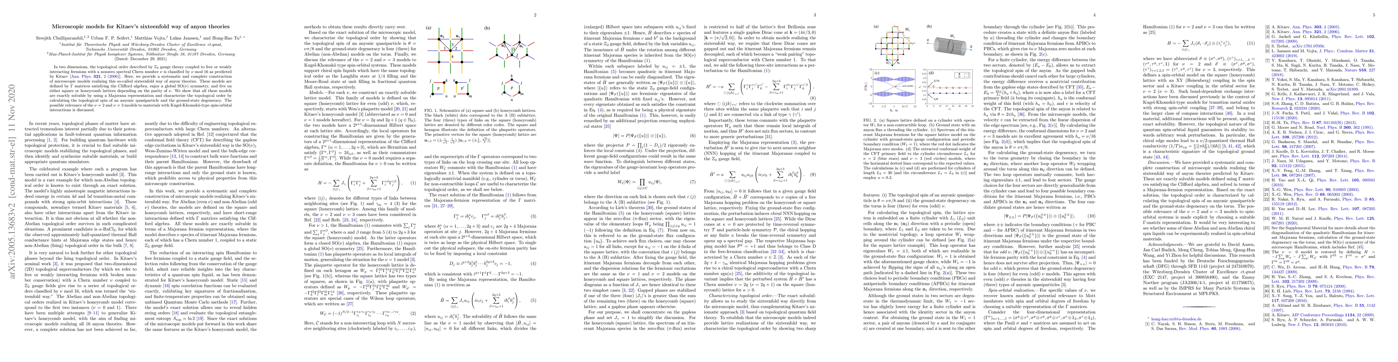 This paper constructs microscopic models for Kitaev's sixteenfold way of anyon theories, providing exact solvable models on square or honeycomb lattices based on $\Gamma$ matrices. The models exhibit topological order characterized by $\nu \; \mathrm{mod}\; 16$ and are explored for potential relevance in materials with Kugel-Khomskii-type spin-orbital interactions.