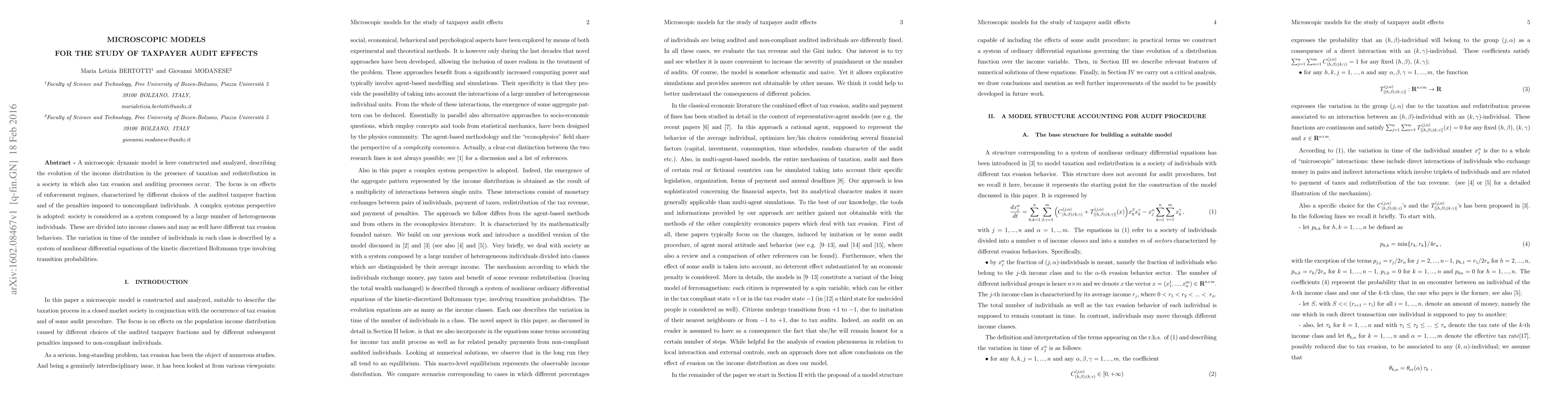 A microscopic dynamic model is here constructed and analyzed, describing the evolution of the income distribution in the presence of taxation and redistribution in a society in which also tax evasion and auditing processes occur. The focus is on effects of enforcement regimes, characterized by different choices of the audited taxpayer fraction and of the penalties imposed to noncompliant individuals. A complex systems perspective is adopted: society is considered as a system composed by a large number of heterogeneous individuals. These are divided into income classes and may as well have different tax evasion behaviors. The variation in time of the number of individuals in each class is described by a system of nonlinear differential equations of the kinetic discretized Boltzmann type involving transition probabilities.