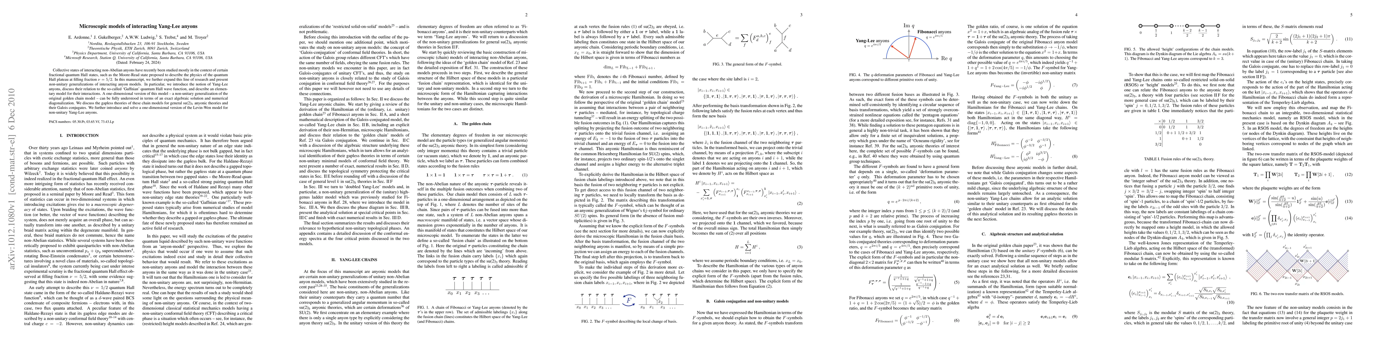 This paper explores microscopic models of interacting Yang-Lee anyons, extending studies on non-Abelian anyons in fractional quantum Hall states. It introduces a one-dimensional non-unitary generalization of the golden chain model and solves it exactly, discussing its implications for general su(2)_k anyonic theories and their Galois conjugates.