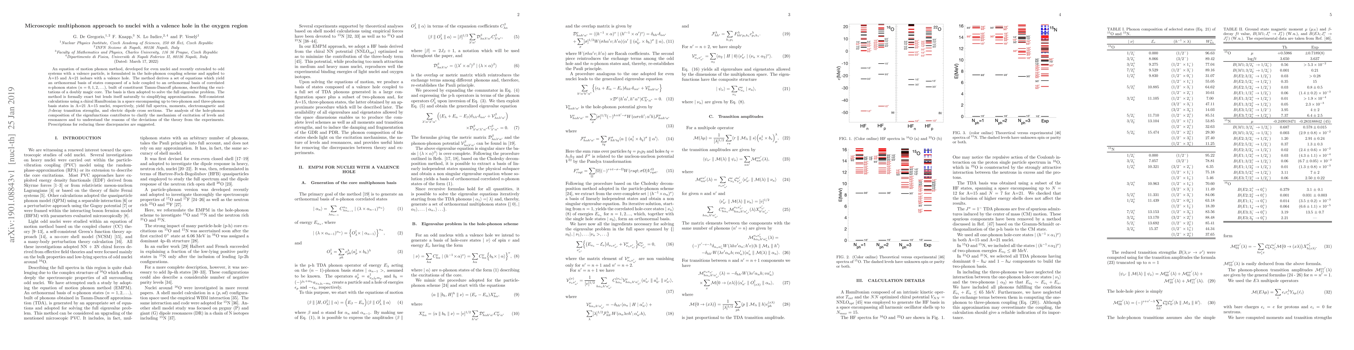 This paper develops a microscopic multiphonon approach to study odd nuclei with a valence hole in the oxygen region, using an equation of motion phonon method. The method yields an orthonormal basis of states, enabling the analysis of excitations and deviations from experimental data, with suggestions for reducing discrepancies.
