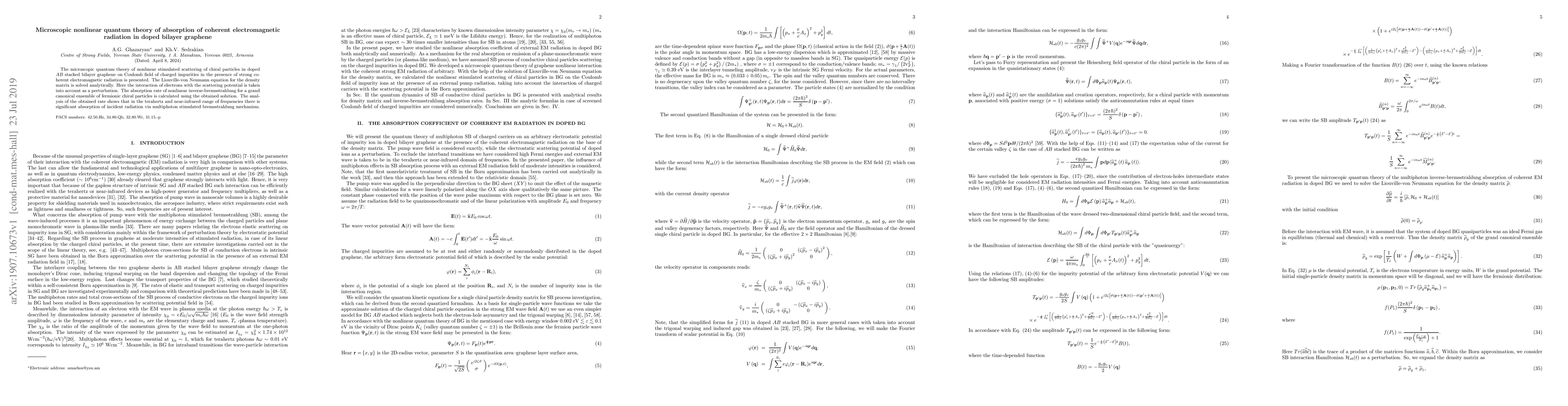 This paper presents a microscopic quantum theory for the nonlinear absorption of coherent electromagnetic radiation in doped bilayer graphene, solving the Liouville-von Neumann equation for the density matrix. It reveals significant absorption in the terahertz and near-infrared range via multiphoton stimulated bremsstrahlung.