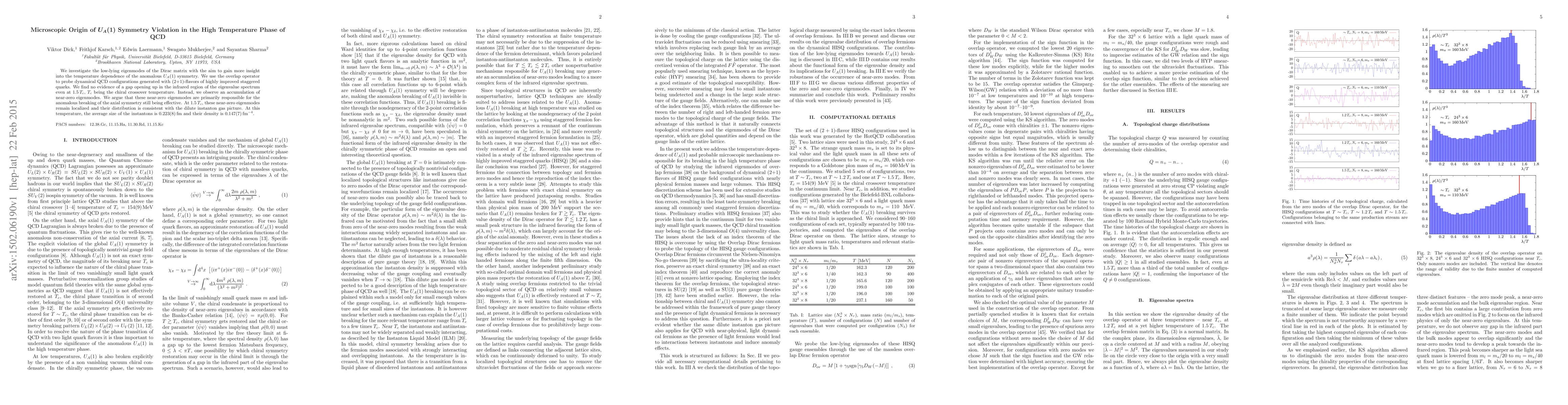 We investigate the low-lying eigenmodes of the Dirac matrix with the aim to gain more insight into the temperature dependence of the anomalous $U_A(1)$ symmetry. We use the overlap operator to probe dynamical QCD configurations generated with (2+1)-flavors of highly improved staggered quarks. We find no evidence of a gap opening up in the infrared region of the eigenvalue spectrum even at $1.5\,T_c$, $T_c$ being the chiral crossover temperature. Instead, we observe an accumulation of near-zero eigenmodes. We argue that these near-zero eigenmodes are primarily responsible for the anomalous breaking of the axial symmetry still being effective. At $1.5\,T_c$, these near-zero eigenmodes remain localized and their distribution is consistent with the dilute instanton gas picture. At this temperature, the average size of the instantons is $0.223(8)\,\text{fm}$ and their density is $0.147(7)\,\text{fm}^{-4}$.