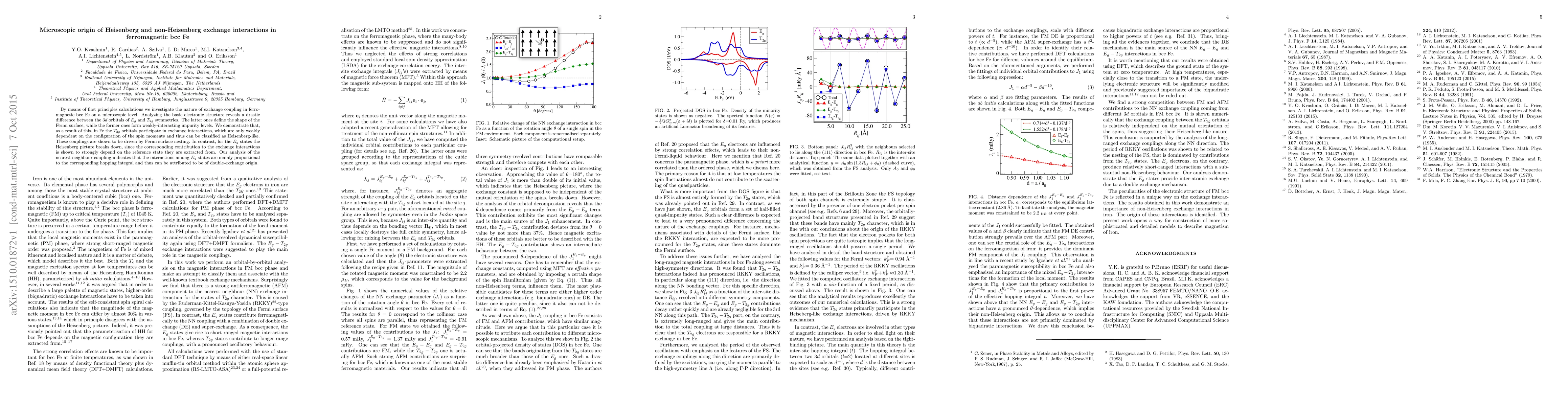 These findings are derived from first principles calculations that investigate the microscopic origin of exchange interactions in ferromagnetic Fe.