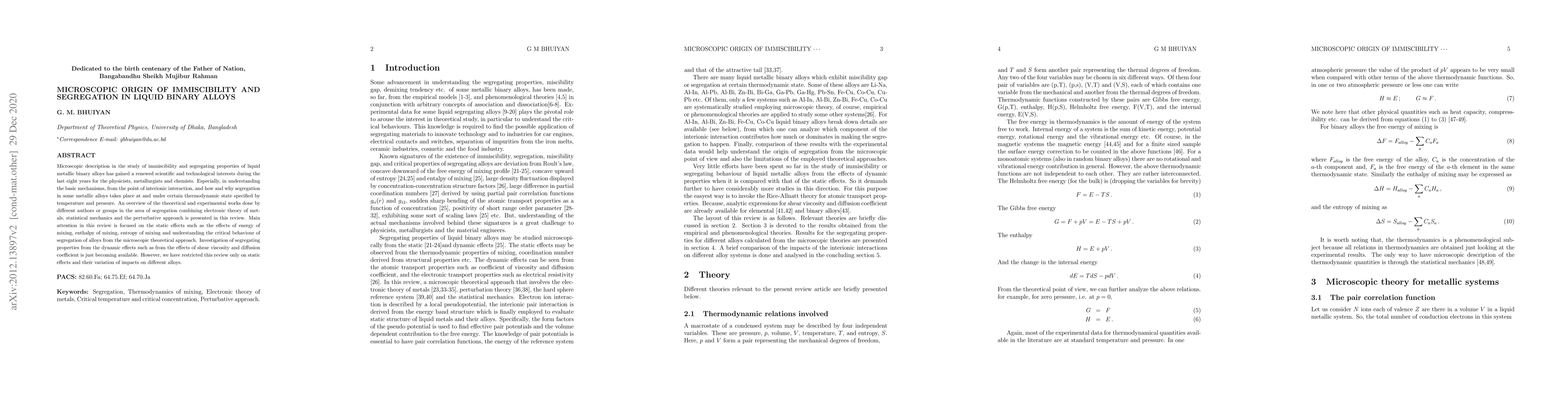 Microscopic description in the study of immiscibility and segregating properties of liquid metallic binary alloys has gained a renewed scientific and technological interests during the last eight years for the physicists, metallurgists and chemists. Especially, in understanding the basic mechanisms, from the point of interionic interaction, and how and why segregation in some metallic alloys takes place at and under certain thermodynamic state specified by temperature and pressure. An overview of the theoretical and experimental works done by different authors or groups in the area of segregation combining electronic theory of metals, statistical mechanics and the perturbative approach is presented in this review. Main attention in this review is focused on the static effects such as the effects of energy of mixing, enthalpy of mixing, entropy of mixing and understanding the critical behaviour of segregation of alloys from the microscopic theoretical approach. Investigation of segregating properties from the dynamic effects such as from the effects of shear viscosity and diffusion coefficient is just becoming available. However, we have restricted this review only on static effects and their variation of impacts on different alloys.