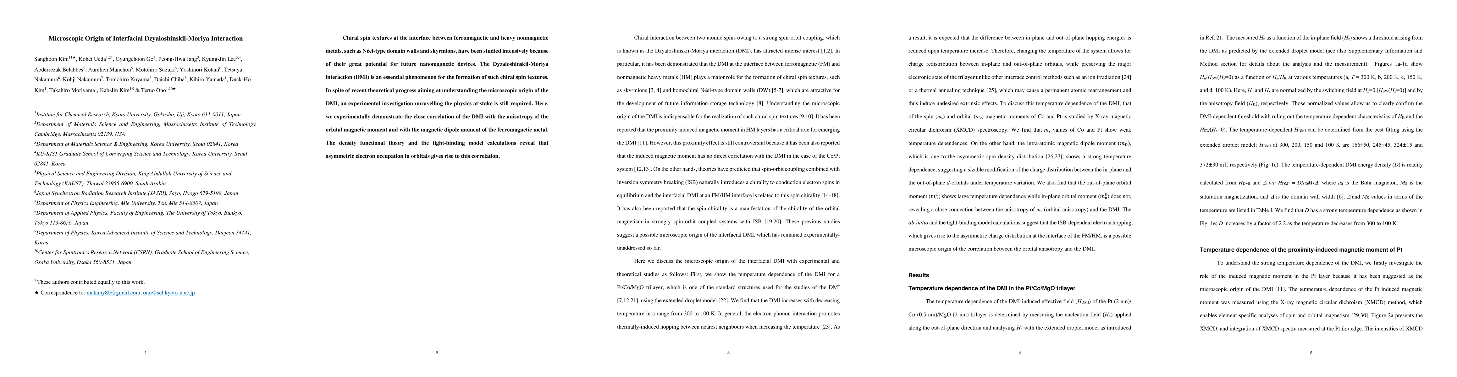 Chiral spin textures at the interface between ferromagnetic and heavy nonmagnetic metals, such as Neel-type domain walls and skyrmions, have been studied intensively because of their great potential for future nanomagnetic devices. The Dyzaloshinskii-Moriya interaction (DMI) is an essential phenomenon for the formation of such chiral spin textures. In spite of recent theoretical progress aiming at understanding the microscopic origin of the DMI, an experimental investigation unravelling the physics at stake is still required. Here, we experimentally demonstrate the close correlation of the DMI with the anisotropy of the orbital magnetic moment and with the magnetic dipole moment of the ferromagnetic metal. The density functional theory and the tight-binding model calculations reveal that asymmetric electron occupation in orbitals gives rise to this correlation.