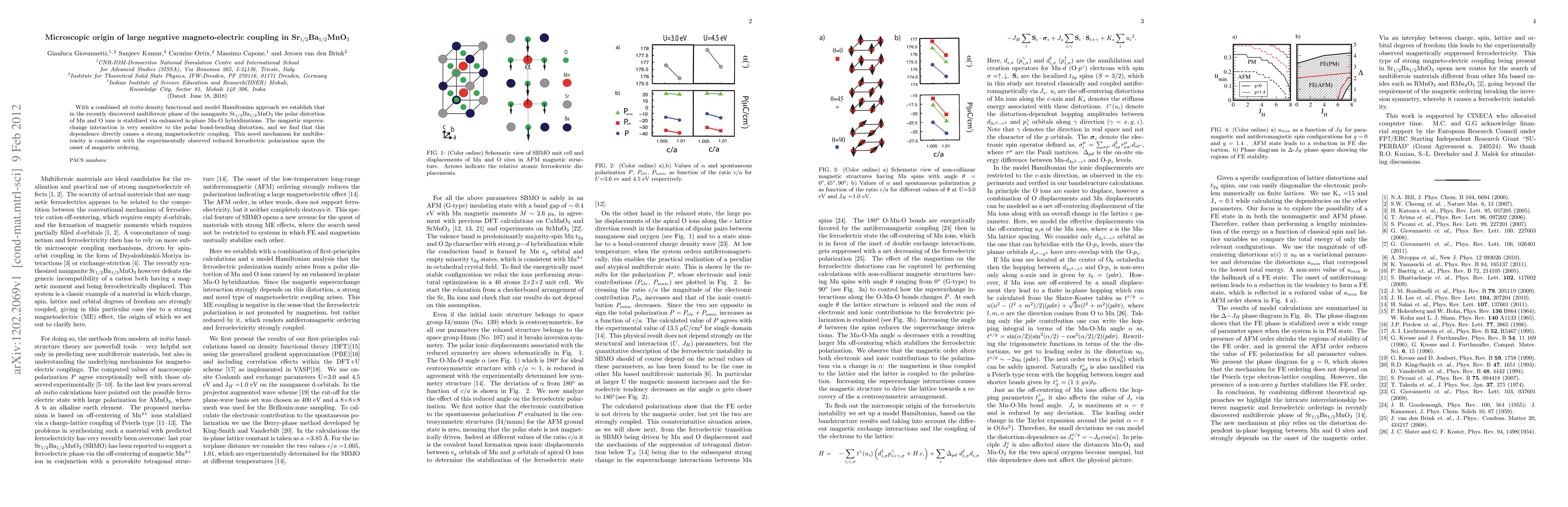With a combined ab initio density functional and model Hamiltonian approach we establish that in the recently discovered multiferroic phase of the manganite Sr$_{1/2}$Ba$_{1/2}$MnO$_{3}$ the polar distortion of Mn and O ions is stabilized via enhanced in-plane Mn-O hybridizations. The magnetic superexchange interaction is very sensitive to the polar bond-bending distortion, and we find that this dependence directly causes a strong magnetoelectric coupling. This novel mechanism for multiferroicity is consistent with the experimentally observed reduced ferroelectric polarization upon the onset of magnetic ordering.