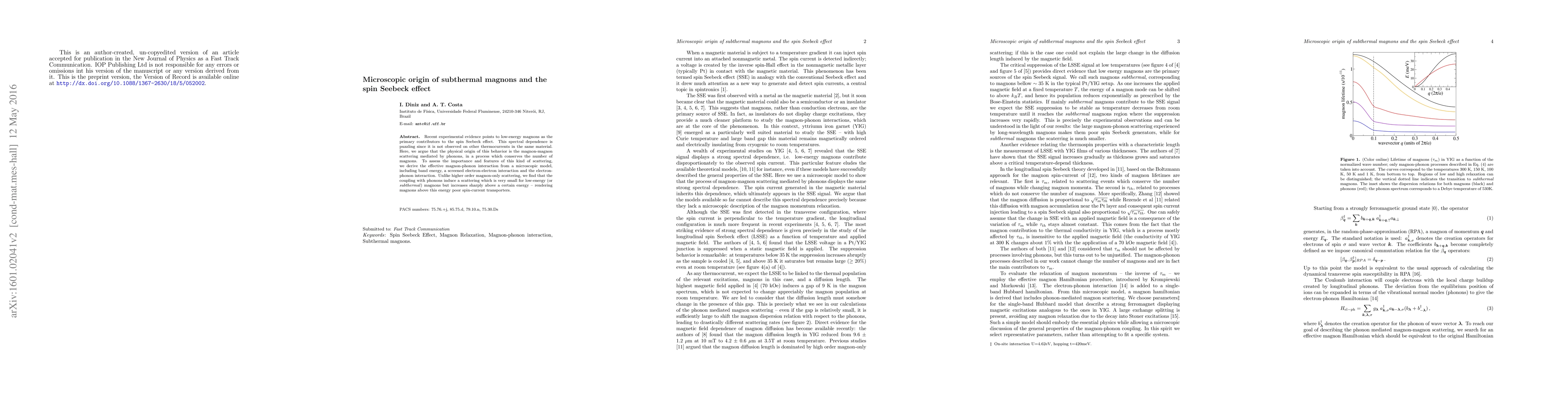 Recent experimental evidence points to low-energy magnons as the primary contributors to the spin Seebeck effect. This spectral dependence is puzzling since it is not observed on other thermocurrents in the same material. Here, we argue that the physical origin of this behavior is the magnon-magnon scattering mediated by phonons, in a process which conserves the number of magnons. To assess the importance and features of this kind of scattering, we derive the effective magnon-phonon interaction from a microscopic model, including band energy, a screened electron-electron interaction and the electron-phonon interaction. Unlike higher order magnon-only scattering, we find that the coupling with phonons induce a scattering which is very small for low-energy (or subthermal) magnons but increases sharply above a certain energy -- rendering magnons above this energy poor spin-current transporters.