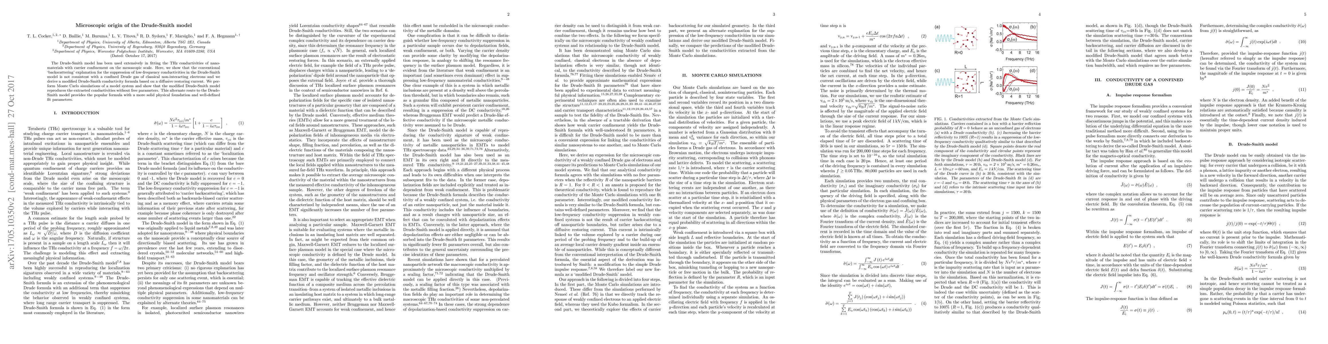 The paper challenges the conventional 'backscattering' explanation for the Drude-Smith model's suppression of low-frequency conductivities in nanomaterials, proposing instead a modified model based on diffusive restoring current. Monte Carlo simulations validate the new model, providing a more robust physical foundation for the Drude-Smith formula.