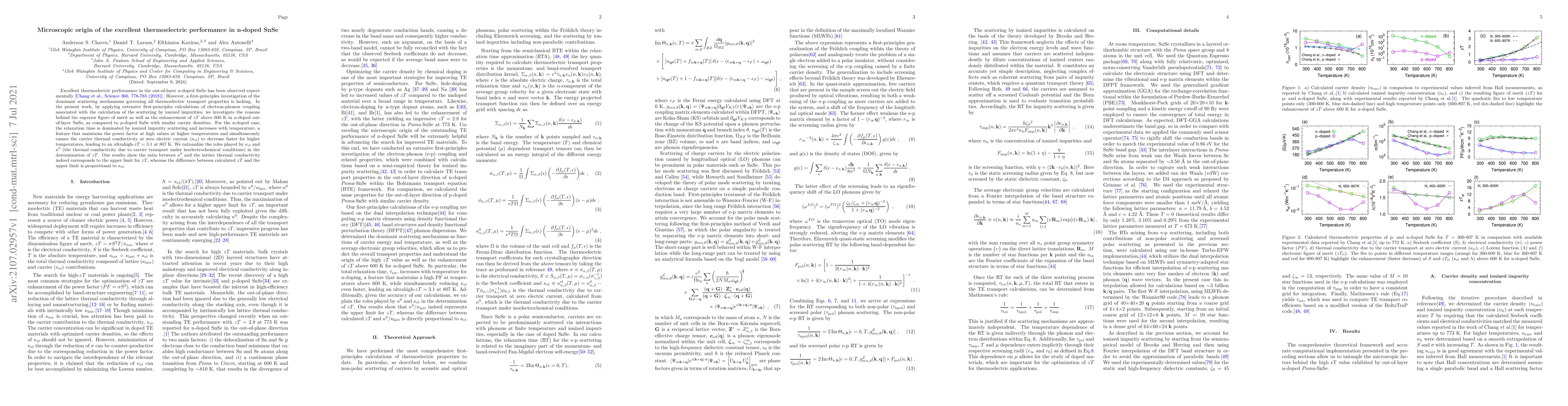 This paper investigates the microscopic mechanisms behind the superior thermoelectric performance in n-doped SnSe using first-principles calculations. It finds that ionized impurity scattering enhances the thermoelectric figure of merit (zT) by maintaining high power factor and reducing carrier thermal conductivity at elevated temperatures, achieving zT = 3.1 at 807 K.