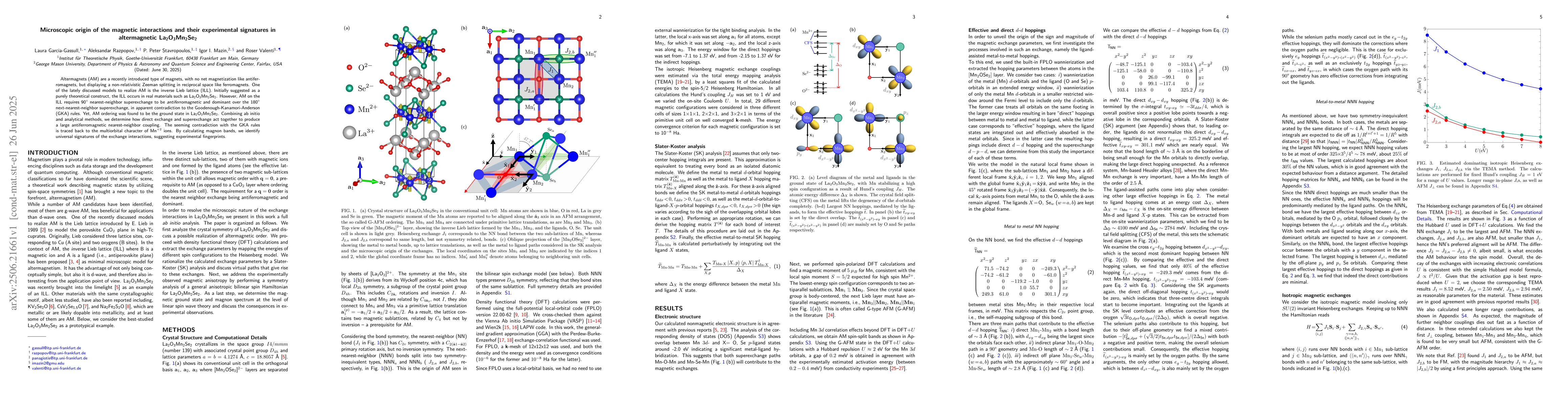 Altermagnets (AM) are a recently introduced type of magnets, with no net magnetization like antiferromagnets, but displaying a non-relativistic Zeeman splitting in reciprocal space like ferromagnets. One of the lately discussed models to realize AM is the inverse Lieb lattice (ILL). Initially suggested as a purely theoretical construct, the ILL occurs in real materials such as La$_2$O$_3$Mn$_2$Se$_2$. However, AM on the ILL requires 90$^\circ$ nearest-neighbor superexchange to be {\it antiferromagnetic} and dominant over the 180$^\circ$ next-nearest-neighbor superexchange, in apparent contradiction to the Goodenough-Kanamori-Anderson (GKA) rules. Yet, AM ordering was found to be the ground state in La$_2$O$_3$Mn$_2$Se$_2$. Combining ab initio and analytical methods, we determine how direct exchange and superexchange act together to produce a large antiferromagnetic nearest-neigbor coupling. The seeming contradiction with the GKA rules is traced back to the multiorbital character of Mn$^{+2}$ ions. By calculating magnon bands, we identify universal signatures of the exchange interactions, suggesting experimental fingerprints.