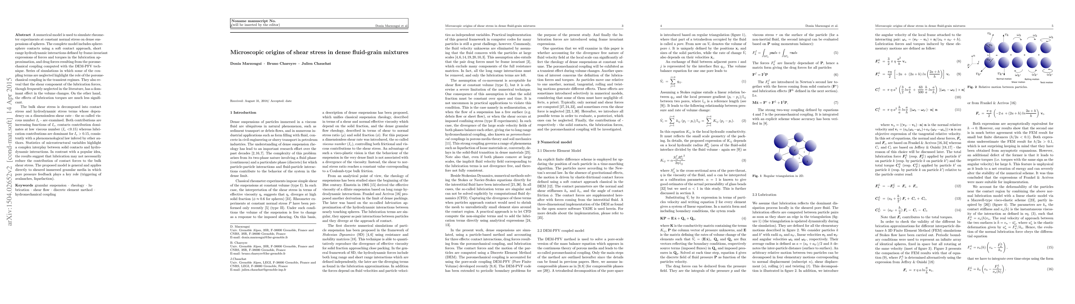 This research uses a numerical model to simulate dense suspensions of spheres, highlighting the significant role of poromechanical coupling and lubrication forces in shear stress. It challenges the common notion that lubrication reduces contact force contribution to bulk shear stress, suggesting a complex interplay between solid contacts and hydrodynamic interactions.
