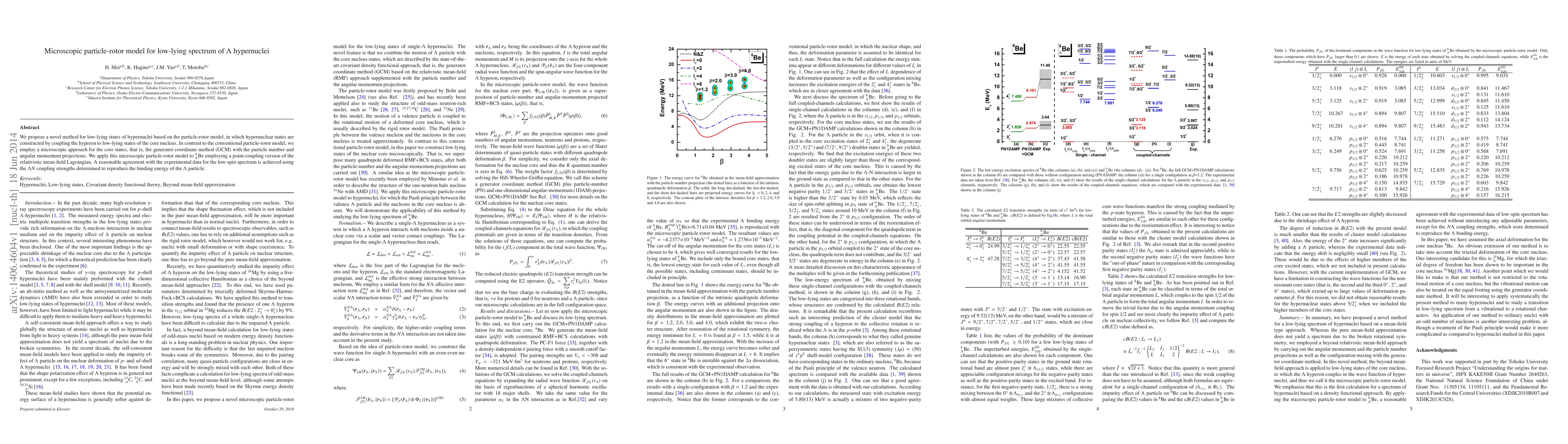 This paper introduces a microscopic particle-rotor model using the generator coordinate method to describe low-lying states in Lambda hypernuclei, specifically $^9_\Lambda$Be, achieving good agreement with experimental data. The model employs relativistic mean-field Lagrangian and $\Lambda N$ coupling strengths to reproduce the binding energy of the Lambda particle.