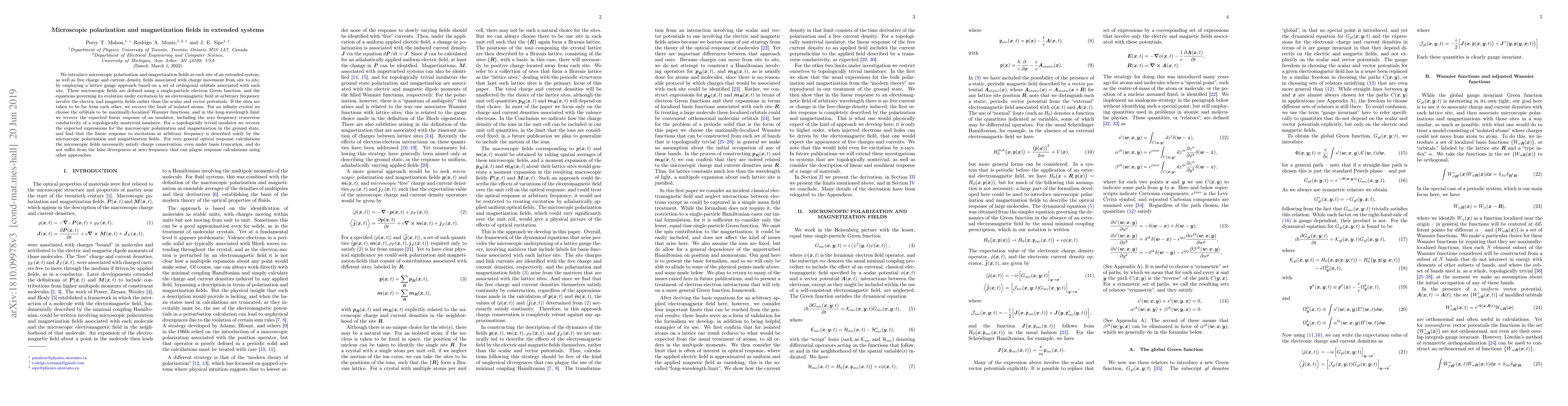 We introduce microscopic polarization and magnetization fields at each site of an extended system, as well as free charge and current density fields associated with charge movement from site to site, by employing a lattice gauge approach based on a set of orthogonal orbitals associated with each site. These microscopic fields are defined using a single-particle electron Green function, and the equations governing its evolution under excitation by an electromagnetic field at arbitrary frequency involve the electric and magnetic fields rather than the scalar and vector potentials. If the sites are taken to be far from each other, we recover the limit of isolated atoms. For an infinite crystal we choose the orbitals to be maximally-localized Wannier functions, and in the long wavelength limit we recover the expected linear response of an insulator, including the zero frequency transverse conductivity of a topologically nontrivial insulator. For a topologically trivial insulator we recover the expected expressions for the macroscopic polarization and magnetization in the ground state, and find that the linear response to excitation at arbitrary frequency is described solely by the microscopic polarization and magnetization fields. For very general optical response calculations the microscopic fields necessarily satisfy charge conservation, even under basis truncation, and do not suffer from the false divergences at zero frequency that can plague response calculations using other approaches.