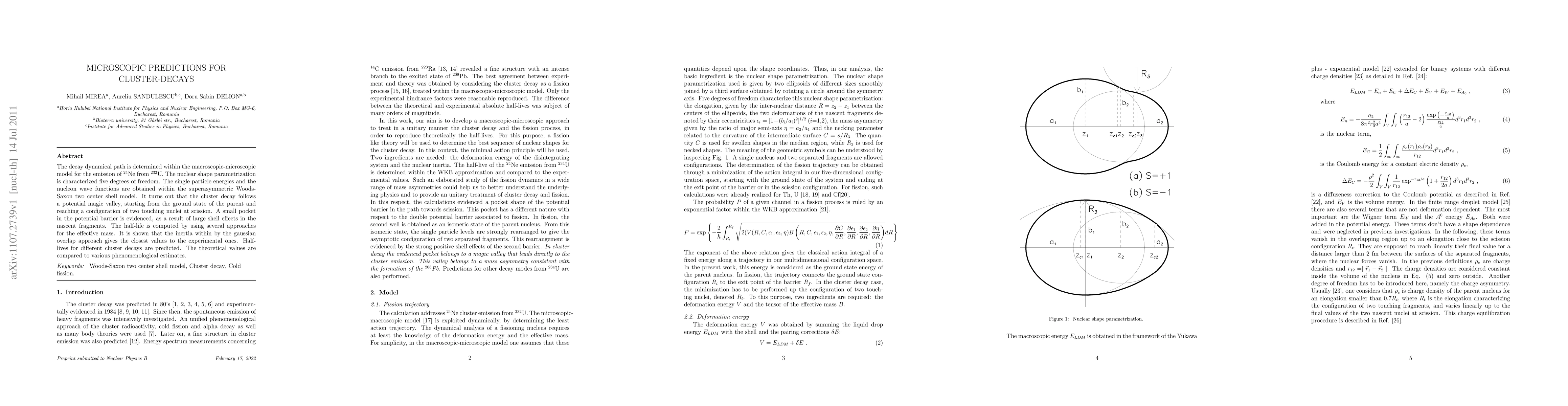 The decay dynamical path is determined within the macroscopic-microscopic model for the emission of 24Ne from 232U. The nuclear shape parametrization is characterized five degrees of freedom. The single particle energies and the nucleon wave functions are obtained within the superasymmetric Woods-Saxon two center shell model. It turns out that the cluster decay follows a potential magic valley, starting from the ground state of the parent and reaching a configuration of two touching nuclei at scission. A small pocket in the potential barrier is evidenced, as a result of large shell effects in the nascent fragments. The half-life is computed by using several approaches for the effective mass. It is shown that the inertia within by the gaussian overlap approach gives the closest values to the experimental ones. Half-lives for different cluster decays are predicted. The theoretical values are compared to various phenomenological estimates.