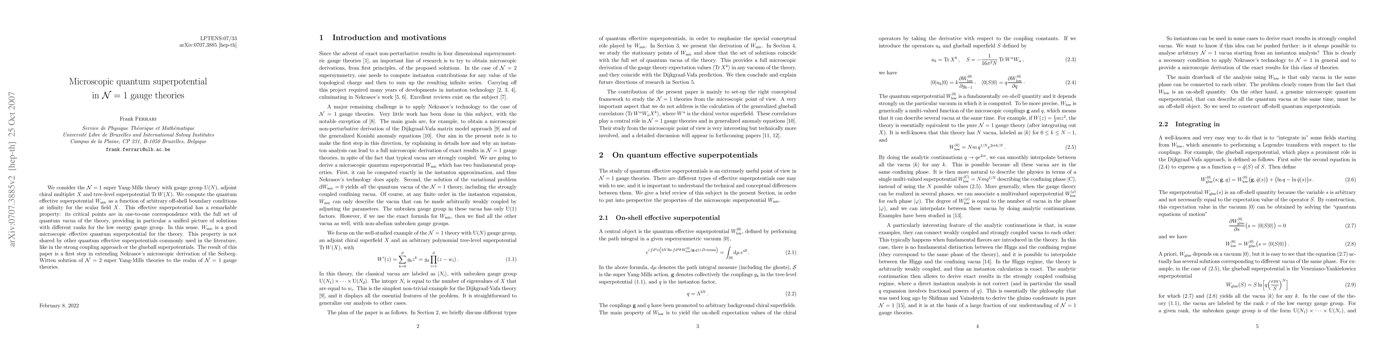This paper computes a microscopic quantum effective superpotential for N=1 super Yang-Mills theory, demonstrating that its critical points correspond directly to the theory's quantum vacua, providing a unified view of solutions. This result aims to extend Nekrasov's microscopic approach from N=2 to N=1 gauge theories.