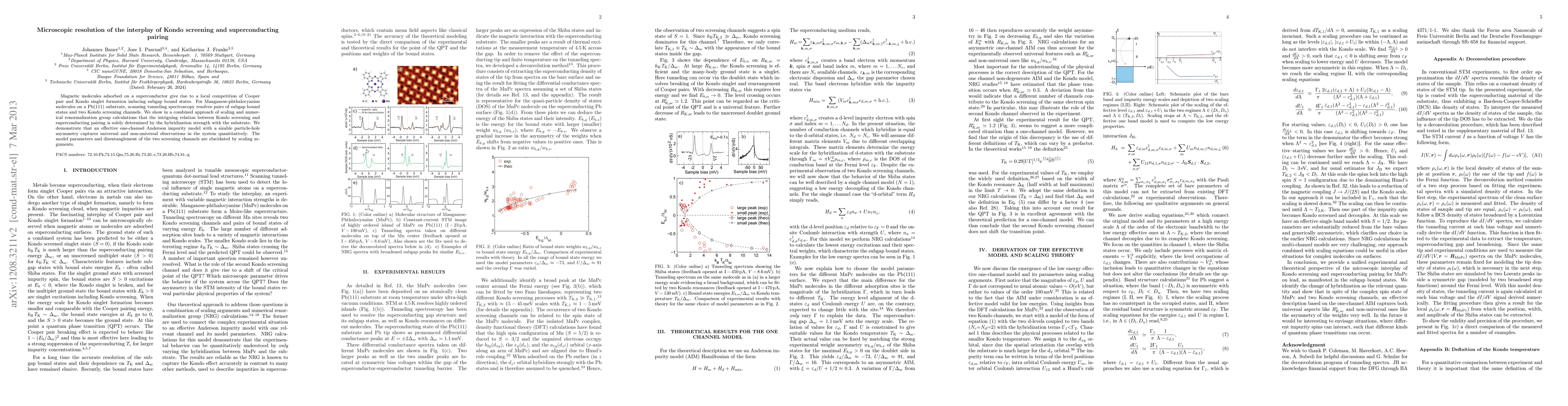 Researchers studied how magnetic molecules on a superconductor's surface affect its behavior, finding that the interaction between the two determines the relationship between superconducting pairing and Kondo screening. The study used a combination of experiments and calculations to understand this phenomenon.