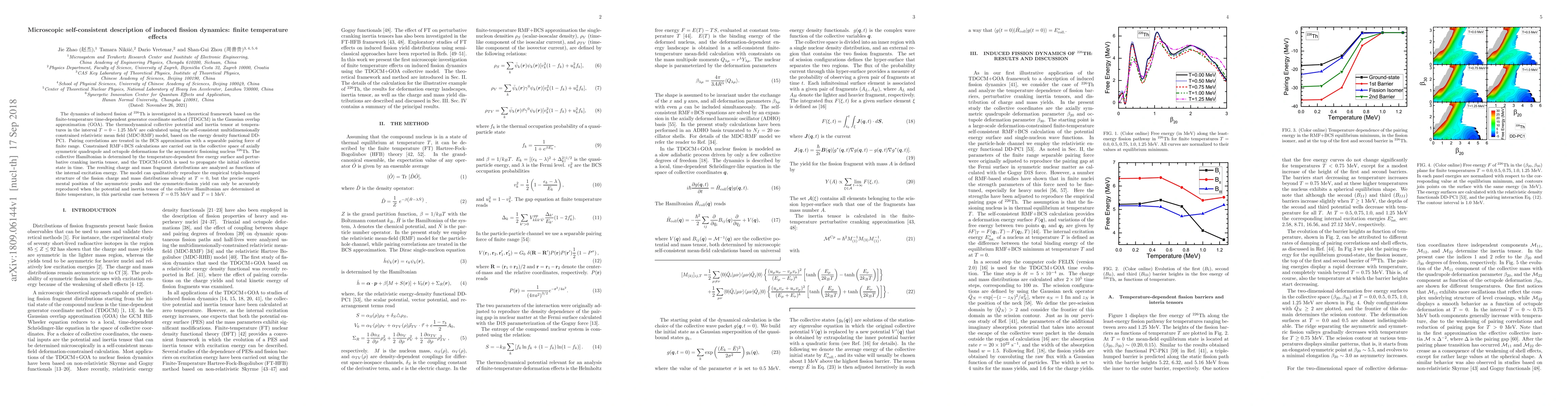 This paper investigates the dynamics of induced fission in $^{226}$Th using the finite-temperature time-dependent generator coordinate method, revealing that the model can reproduce the empirical triple-humped fission charge and mass distributions, but precise experimental agreement requires calculations at finite temperatures between $T=0.75$ MeV and $T=1$ MeV.