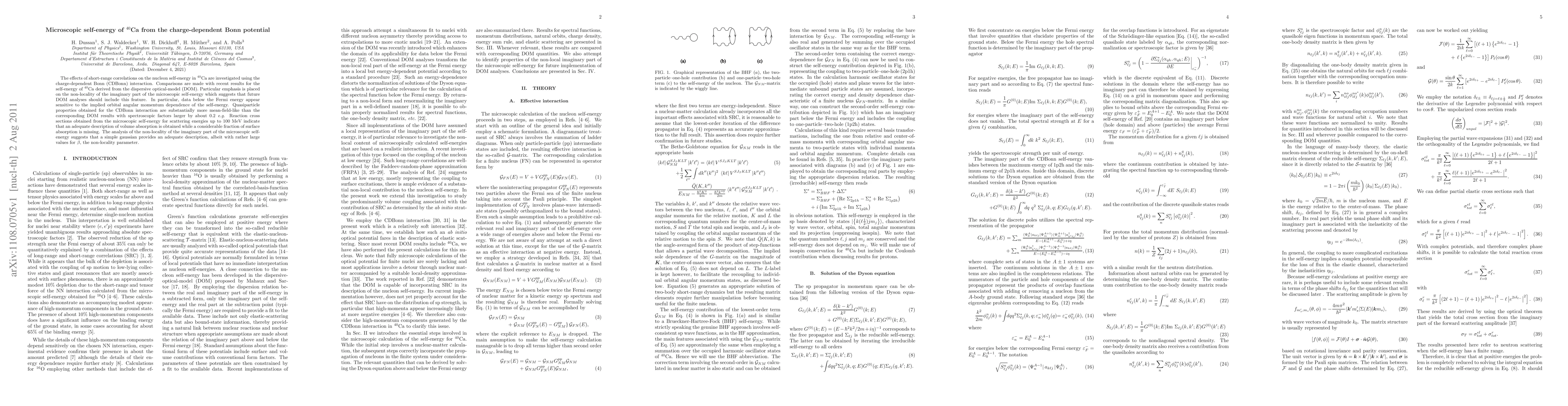 The effects of short-range correlations on the nucleon self-energy in $^{40}$Ca are investigated using the charge-dependent Bonn (CDBonn) interaction. Comparisons are made with recent results for the self-energy of $^{40}$Ca derived from the dispersive optical-model (DOM). Particular emphasis is placed on the non-locality of the imaginary part of the microscopic self-energy which suggests that future DOM analyses should include this feature. In particular, data below the Fermi energy appear sensitive to the implied orbital angular momentum dependence of the self-energy. Quasiparticle properties obtained for the CDBonn interaction are substantially more mean-field-like than the corresponding DOM results with spectroscopic factors larger by about 0.2 e.g. Reaction cross sections obtained from the microscopic self-energy for scattering energies up to 100 MeV indicate that an adequate description of volume absorption is obtained while a considerable fraction of surface absorption is missing. The analysis of the non-locality of the imaginary part of the microscopic self-energy suggests that a simple gaussian provides an adequate description, albeit with rather large values for $\beta$, the non-locality parameter.