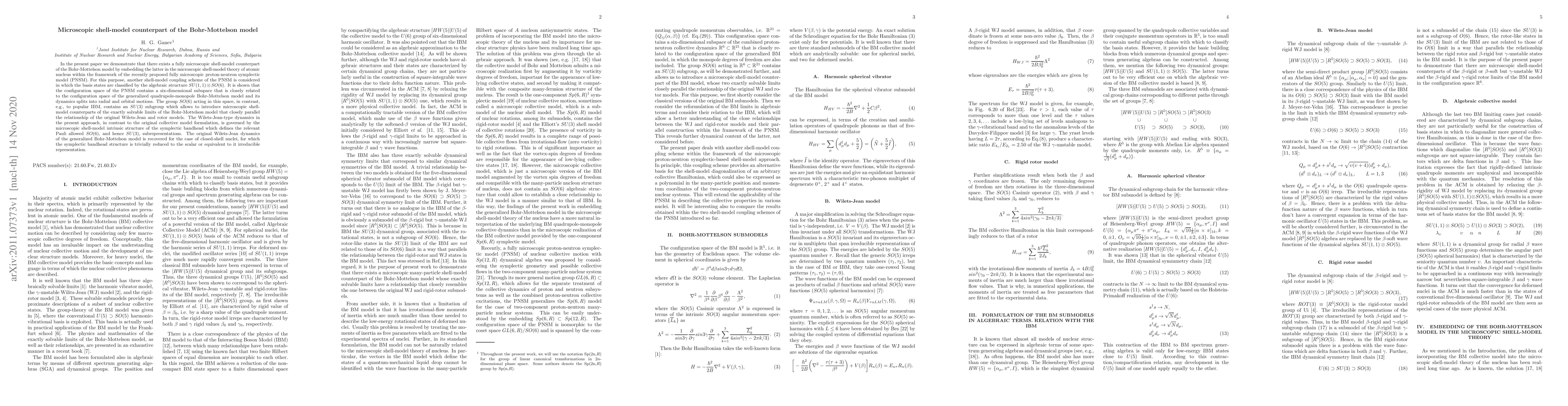 In the present paper we demonstrate that there exists a fully microscopic shell-model counterpart of the Bohr-Mottelson model by embedding the latter in the microscopic shell-model theory of atomic nucleus within the framework of the recently proposed fully microscopic proton-neutron symplectic model (PNSM). For this purpose, another shell-model coupling scheme of the PNSM is considered in which the basis states are classified by the algebraic structure $SU(1,1) \otimes SO(6)$. It is shown that the configuration space of the PNSM contains a six-dimensional subspace that is closely related to the configuration space of the generalized quadrupole-monopole Bohr-Mottelson model and its dynamics splits into radial and orbital motions. The group $SO(6)$ acting in this space, in contrast, e.g., to popular IBM, contains an $SU(3)$ subgroup which allows to introduce microscopic shell-model counterparts of the exactly solvable limits of the Bohr-Mottelson model that closely parallel the relationship of the original Wilets-Jean and rotor models. The Wilets-Jean-type dynamics in the present approach, in contrast to the original collective model formulation, is governed by the microscopic shell-model intrinsic structure of the symplectic bandhead which defines the relevant Pauli allowed $SO(6)$, and hence $SU(3)$, subrepresentations. The original Wilets-Jean dynamics of the generalized Bohr-Mottelson model is recovered for the case of closed-shell nuclei, for which the symplectic bandhead structure is trivially reduced to the scalar or equivalent to it irreducible representation.