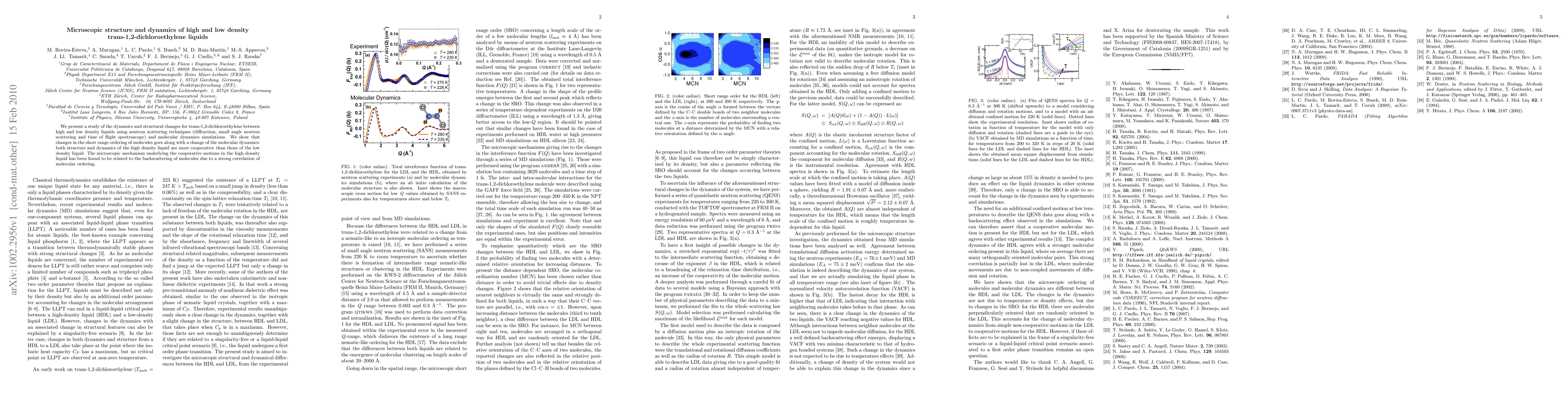 This study explores trans-1,2-dichloroethylene liquids' structure and dynamics using neutron scattering and simulations. It reveals that high-density liquids exhibit more cooperative molecular structuring and dynamics due to strong molecular ordering correlation, which causes backscattering effects.