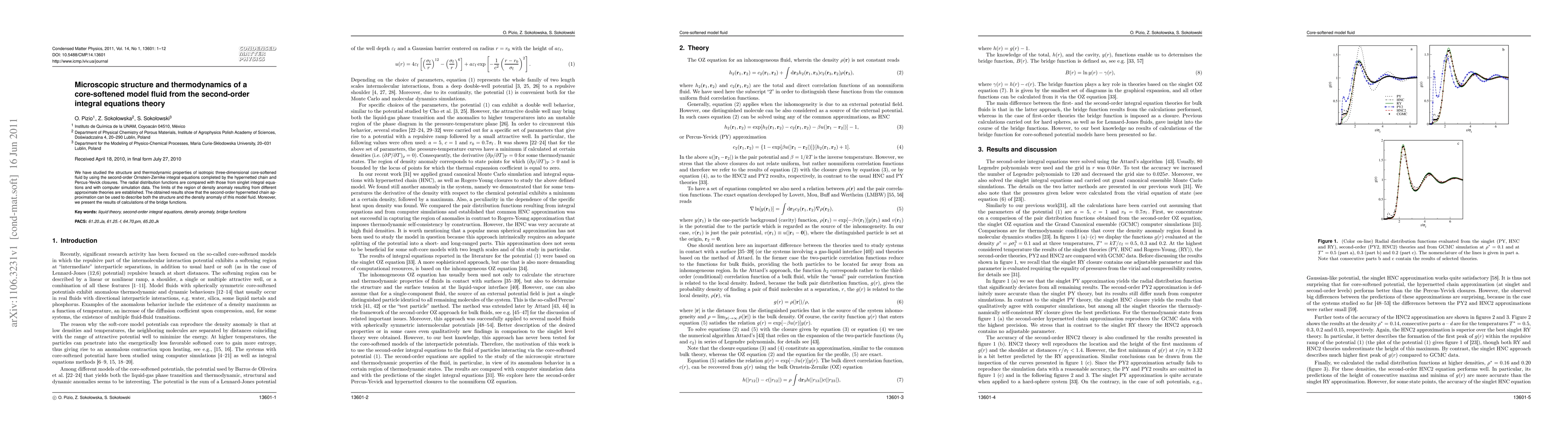 This research applies second-order Ornstein-Zernike integral equations to study the structure and thermodynamics of a three-dimensional core-softened fluid. Results indicate that the second-order hypernetted chain approximation accurately describes the fluid's structure and density anomaly, surpassing singlet integral equations and matching simulation data. The study also presents bridge function calculations.