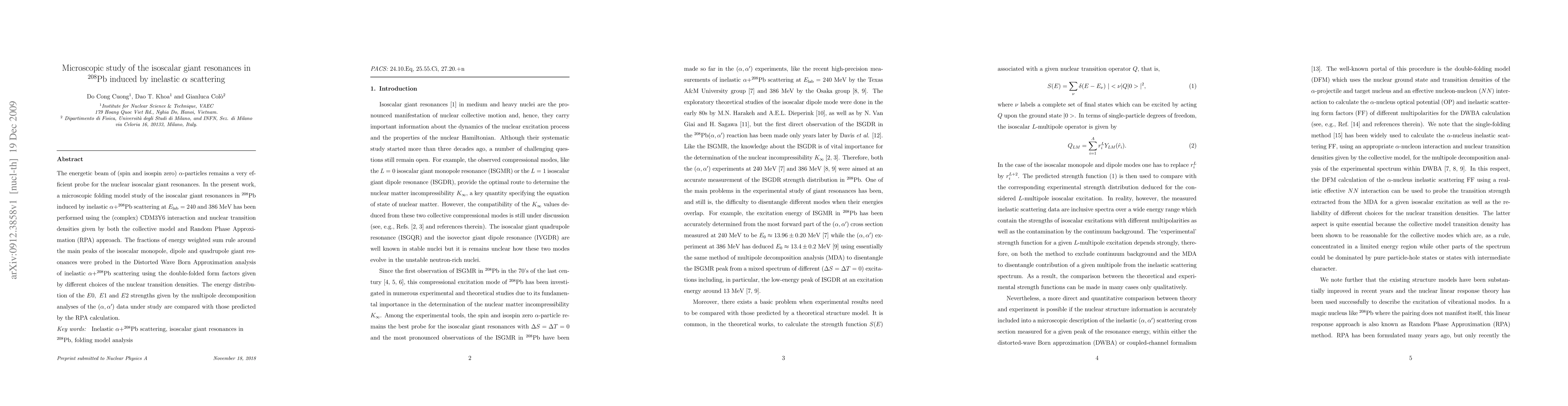 This study investigates the isoscalar giant resonances in $^{208}$Pb using inelastic alpha scattering at 240 and 386 MeV, employing a microscopic folding model with the CDM3Y6 interaction and RPA transition densities. The analysis compares experimental data with theoretical predictions for the energy distribution of E0, E1, and E2 strengths.