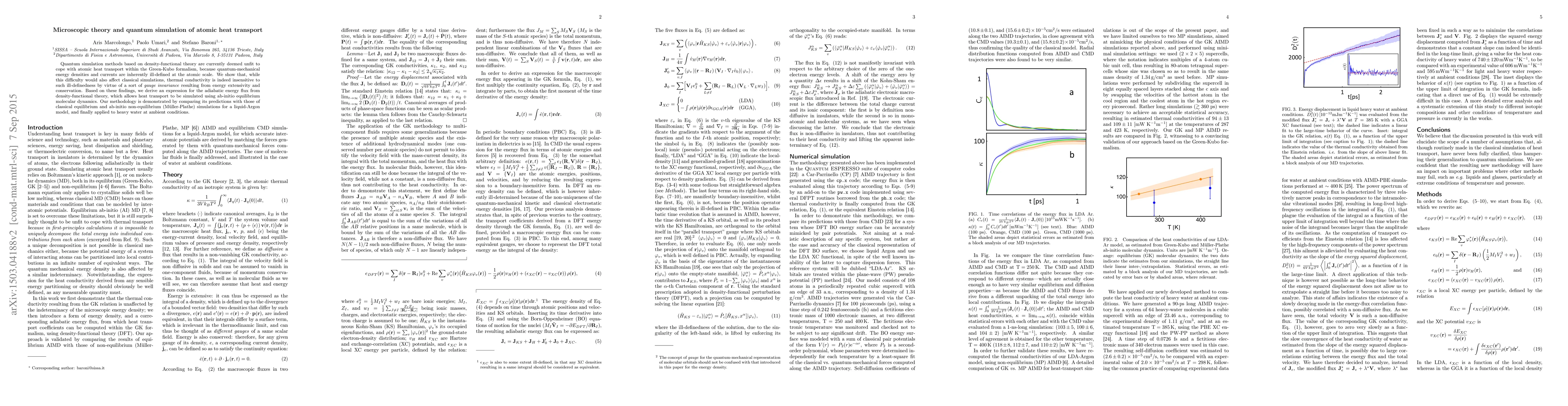 This paper proposes a new method to simulate atomic heat transport using density-functional theory, addressing the issue of ill-defined quantum-mechanical energy densities and currents. It demonstrates that thermal conductivity remains gauge invariant due to energy extensivity and conservation, enabling the derivation of an adiabatic energy flux expression for ab-initio equilibrium molecular dynamics simulations.