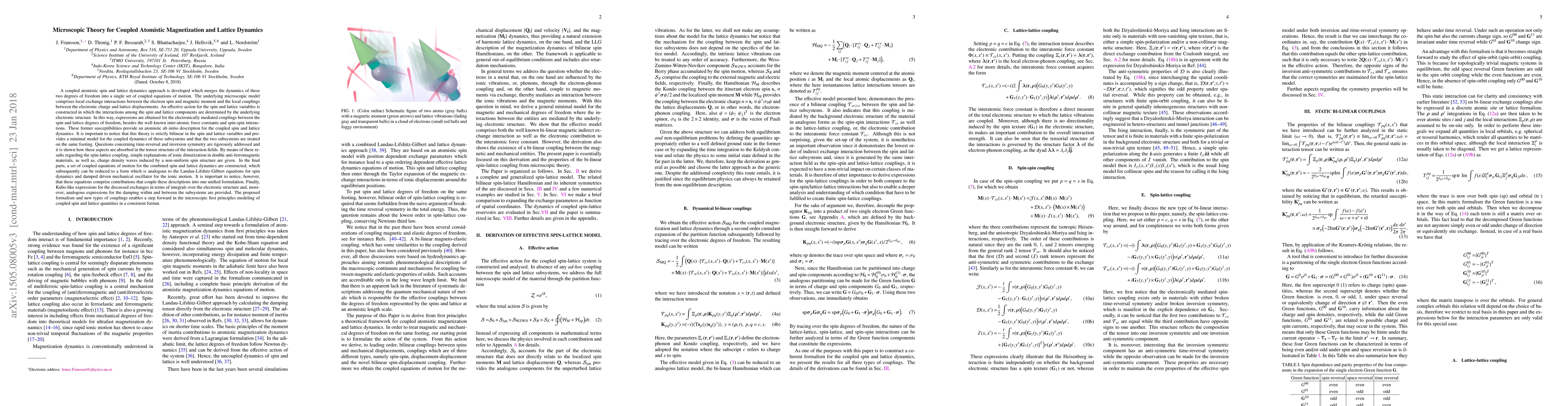 This paper develops a microscopic theory that merges atomistic spin dynamics with lattice dynamics into a unified set of coupled equations. It constructs an effective action to describe electronically mediated couplings between spin and lattice subsystems, providing an ab initio description for their coupled dynamics.