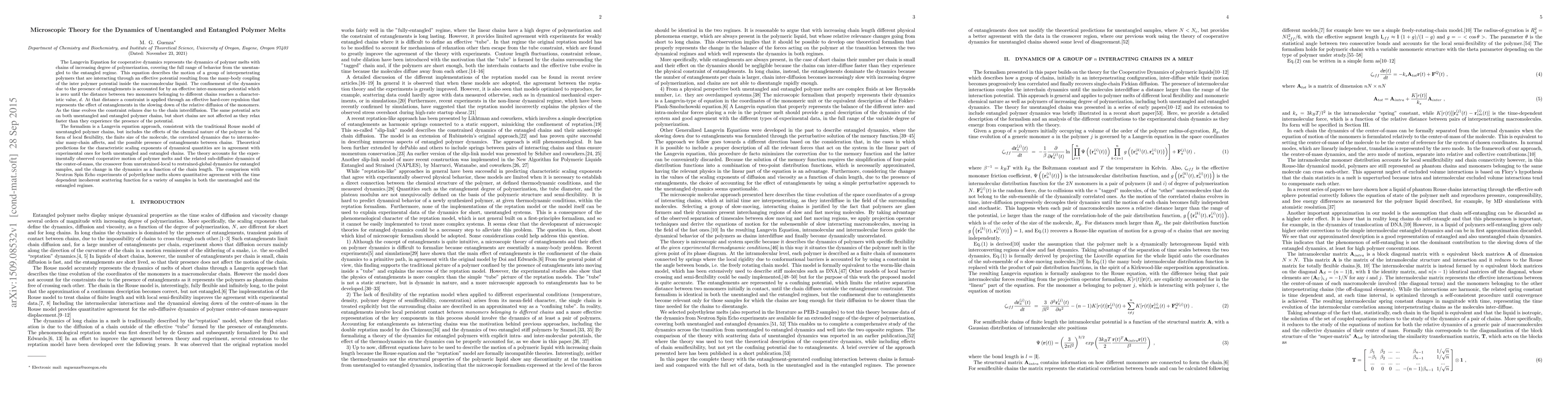 The Langevin Equation for cooperative dynamics represents the dynamics of polymer melts with chains of increasing degree of polymerization, covering the full range of behavior from the unentangled to the entangled regime. This equation describes the motion of a group of interpenetrating polymers that are interacting through an effective potential resulting from the many-body coupling of the inter polymer potential inside the macromolecular liquid. The confinement of the dynamics due to the presence of entanglements is accounted for by an effective inter-monomer potential which is zero until the distance between two monomers belonging to different chains reaches a characteristic value, d. At that distance a constraint is applied through an effective hard-core repulsion that represents the effect of entanglements in the slowing down of the relative diffusion of the monomers. As the time evolves the constraint relaxes due to the chain interdiffusion. The same potential acts on both unentangled and entangled polymer chains, but short chains are not affected as they relax faster than they experience the presence of the potential. The comparison with Neutron Spin Echo experiments of polyethylene melts shows quantitative agreement of the theory with the time dependent incoherent scattering function for a variety of samples in both the unentangled and the entangled regimes.