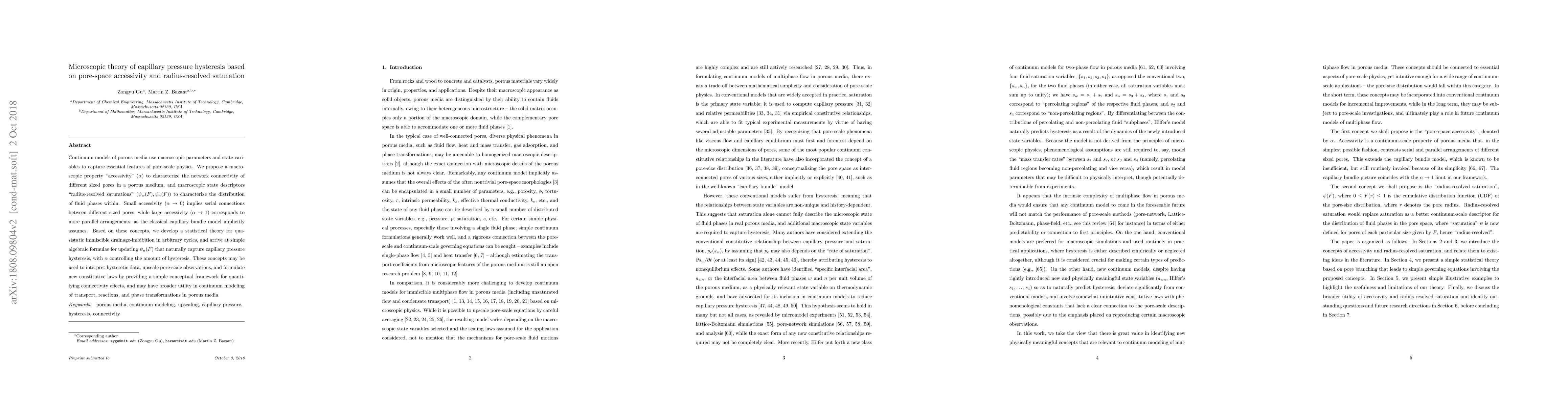 This work provides a novel approach to understand and model hysteresis in porous media, which has implications for various applications including oil recovery, carbon sequestration, and geological carbon dioxide storage.