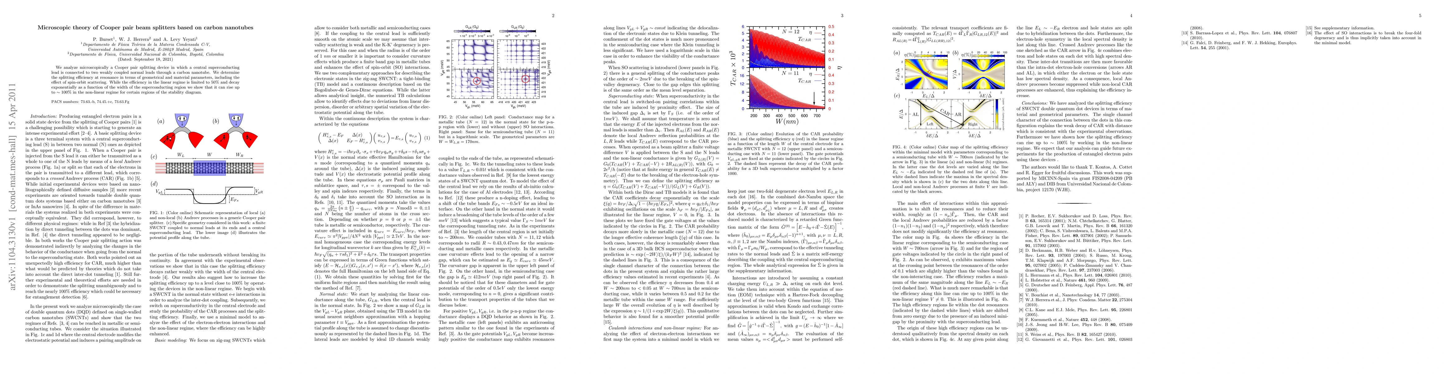 The paper presents a comprehensive microscopic theory of Cooper pair beam splitters using carbon nanotubes, considering geometrical and material parameters, including spin-orbit scattering.