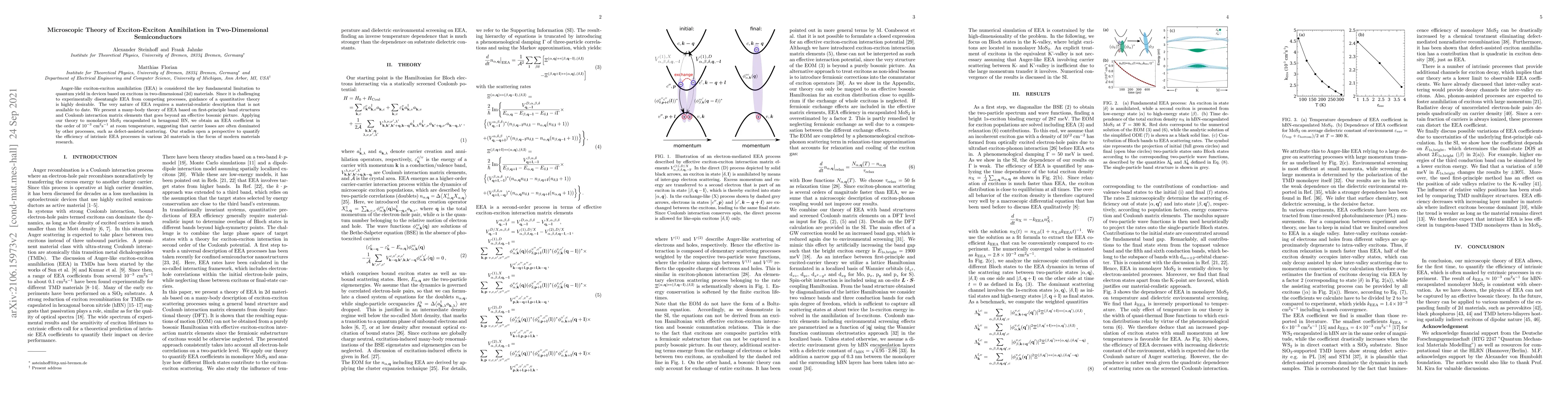 This paper presents a new many-body theory to quantitatively describe exciton-exciton annihilation (EEA) in two-dimensional semiconductors, applying it to monolayer MoS$_2$ to find an EEA coefficient of $10^{-3}$ cm$^{2}$s$^{-1}$ at room temperature, suggesting that other processes often dominate carrier losses.