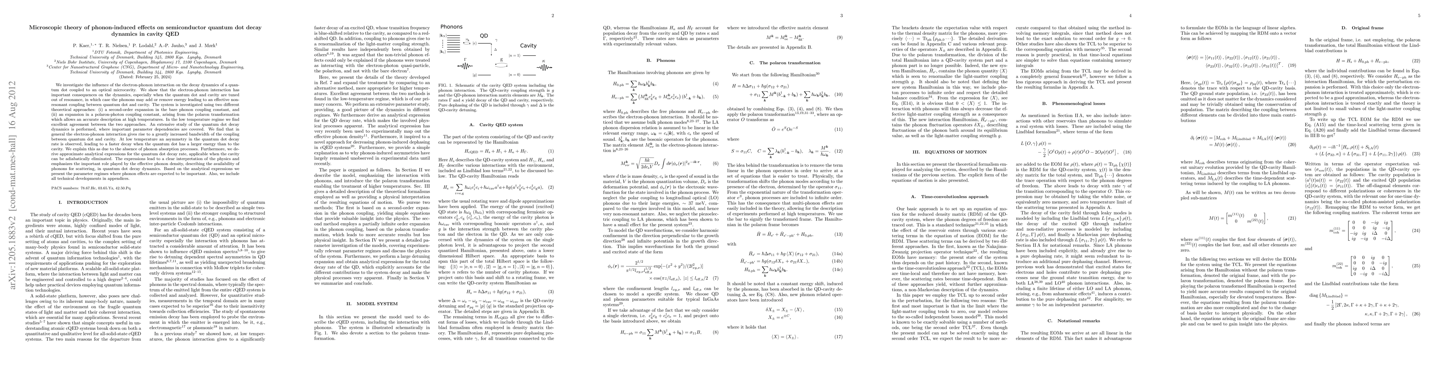 This paper explores how electron-phonon interactions influence the decay dynamics of quantum dots in optical microcavities, especially when the system is detuned. It uses two theoretical approaches to show that phonons can modify the coupling between quantum dots and cavities, leading to an increased bandwidth and asymmetric decay rates at low temperatures due to the absence of phonon absorption processes.