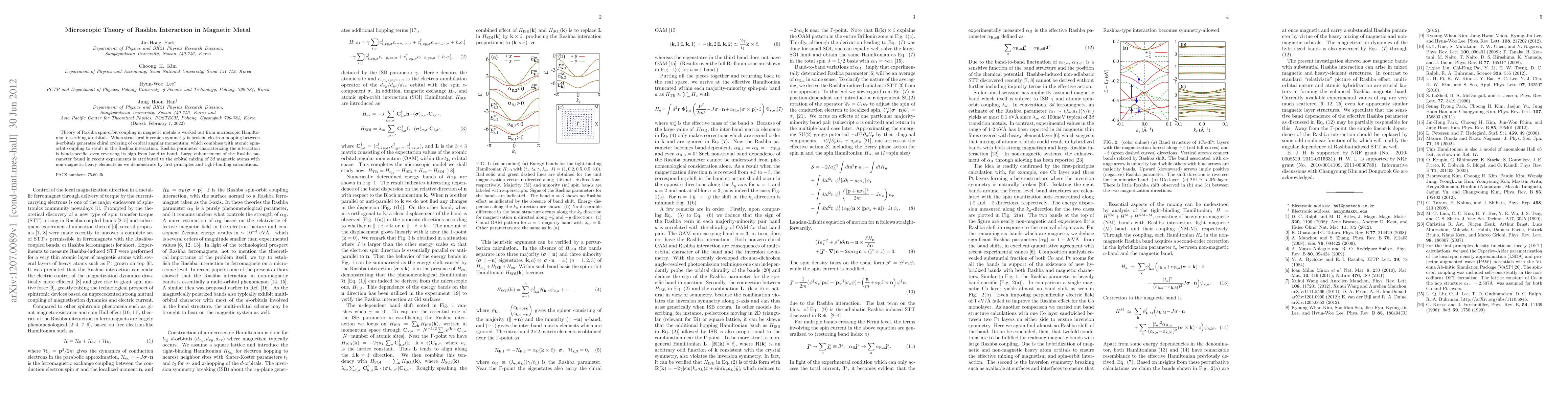 Theory of Rashba spin-orbit coupling in magnetic metals is worked out from microscopic Hamiltonian describing d-orbitals. When structural inversion symmetry is broken, electron hopping between $d$-orbitals generates chiral ordering of orbital angular momentum, which combines with atomic spin-orbit coupling to result in the Rashba interaction. Rashba parameter characterizing the interaction is band-specific, even reversing its sign from band to band. Large enhancement of the Rashba parameter found in recent experiments is attributed to the orbital mixing of 3d magnetic atoms with non-magnetic heavy elements as we demonstrate by first-principles and tight-binding calculations.