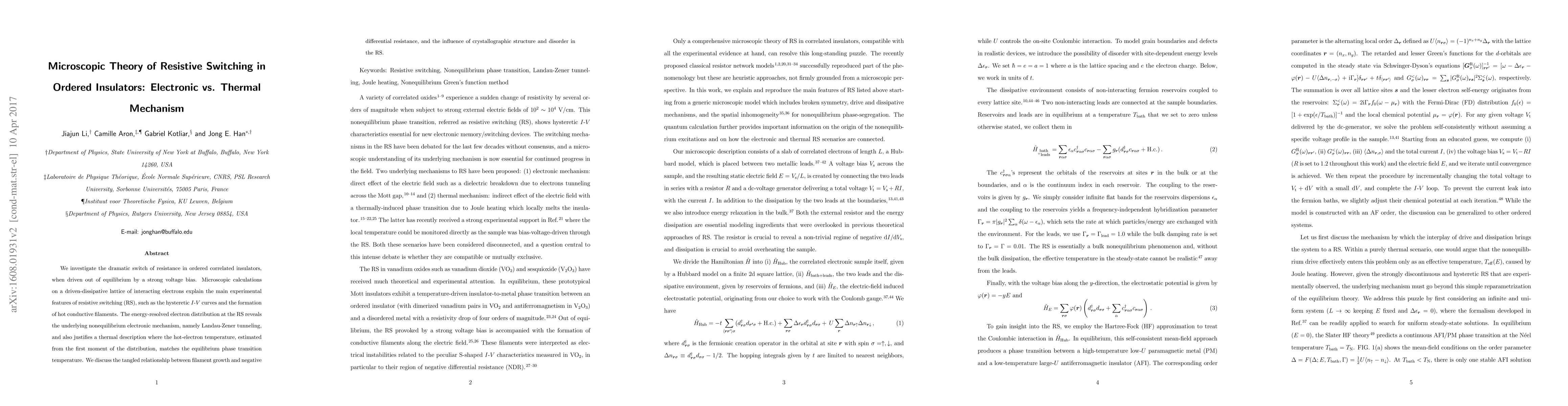 Researchers investigate microscopic mechanisms behind resistive switching in ordered insulators, finding that it involves Landau-Zener tunneling and matching thermal descriptions to crystallographic structure.