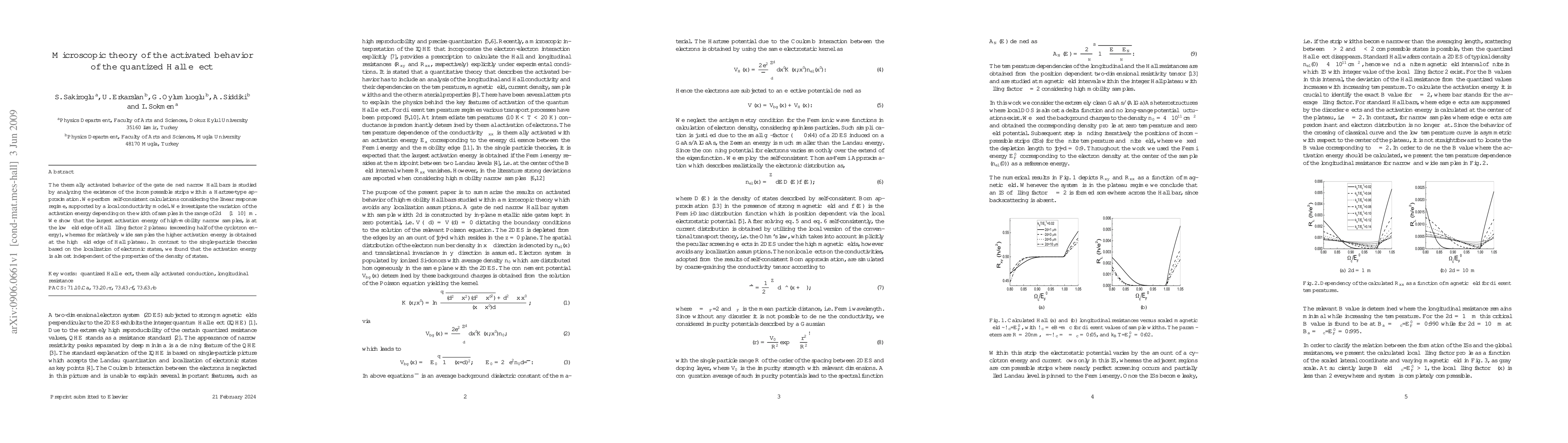 The thermally activated behavior of the gate defined narrow Hall bars is studied by analyzing the existence of the incompressible strips within a Hartree-type approximation. We perform self-consistent calculations considering the linear response regime, supported by a local conductivity model. We investigate the variation of the activation energy depending on the width of samples in the range of $2d\sim [1-10] \mu m$. We show that the largest activation energy of high-mobility narrow samples, is at the low field edge of Hall filling factor 2 plateau (exceeding half of the cyclotron energy), whereas for relatively wide samples the higher activation energy is obtained at the high field edge of Hall plateau. In contrast to the single-particle theories based on the localization of electronic states, we found that the activation energy is almost independent of the properties of the density of states.