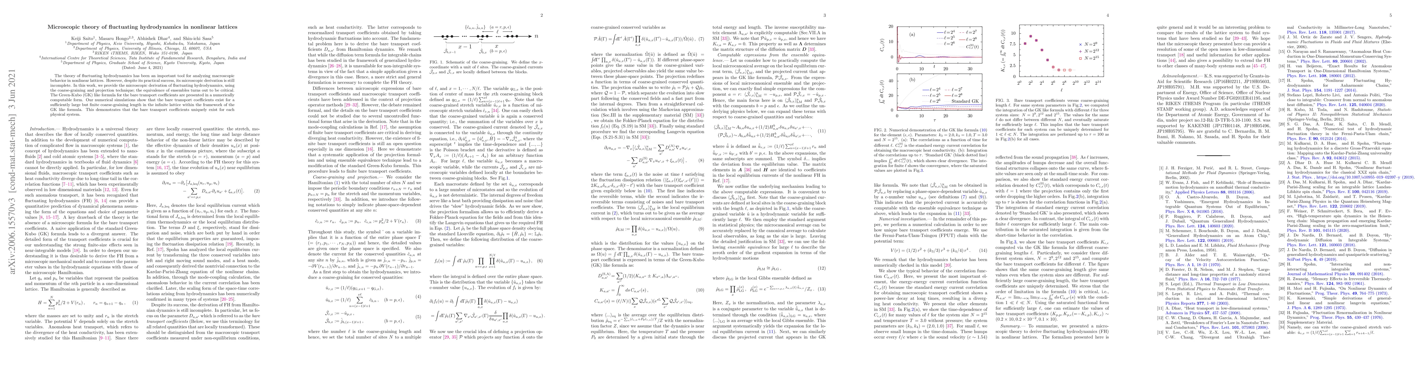 This paper presents a microscopic derivation of fluctuating hydrodynamics in nonlinear lattices using coarse-graining and projection techniques. The study reveals the critical role of ensemble equivalence and provides a numerically computable Green-Kubo formula for bare transport coefficients, demonstrating their existence within a finite coarse-graining length.