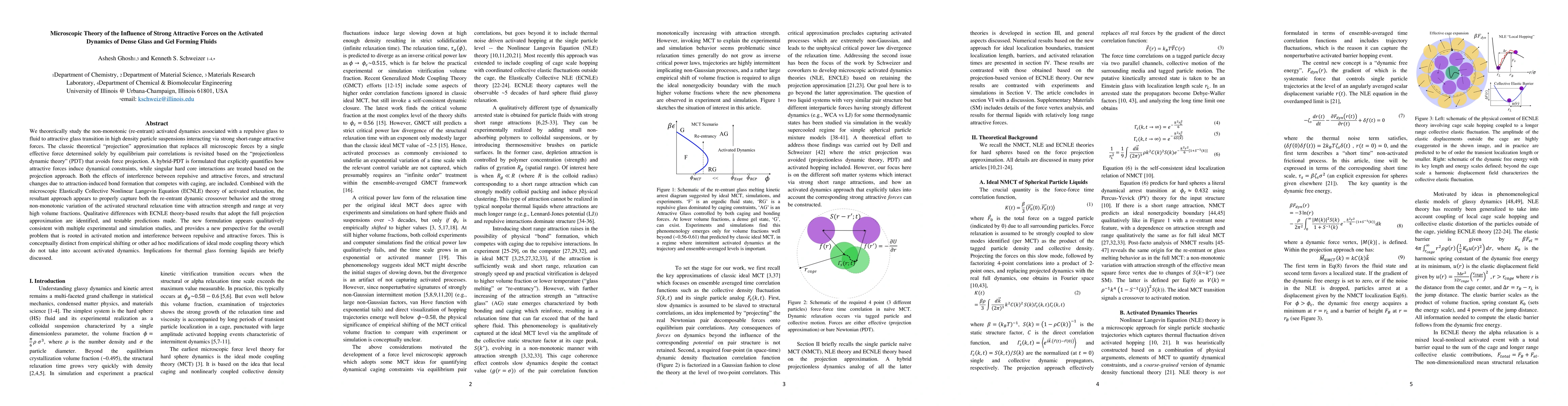 This paper develops a microscopic theory to explain the non-monotonic activated dynamics in dense glass and gel forming fluids under strong attractive forces, using a hybrid-PDT approach that avoids force projection. The new formulation, combined with ECNLE theory, captures re-entrant dynamic behavior and provides testable predictions, offering a fresh perspective on the interplay between repulsive and attractive forces.