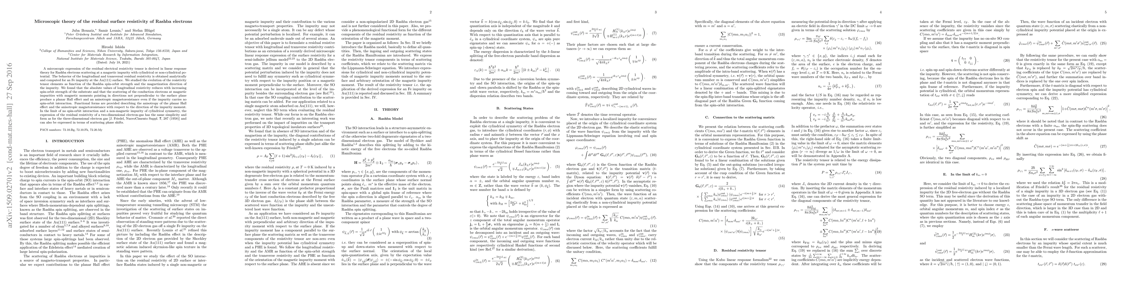 The research paper derives a microscopic expression of residual surface resistivity for Rashba electrons scattering at magnetic impurities, finding that spin-orbit strength affects longitudinal resistivity and impurity direction influences planar Hall effect and anisotropic magnetoresistance.