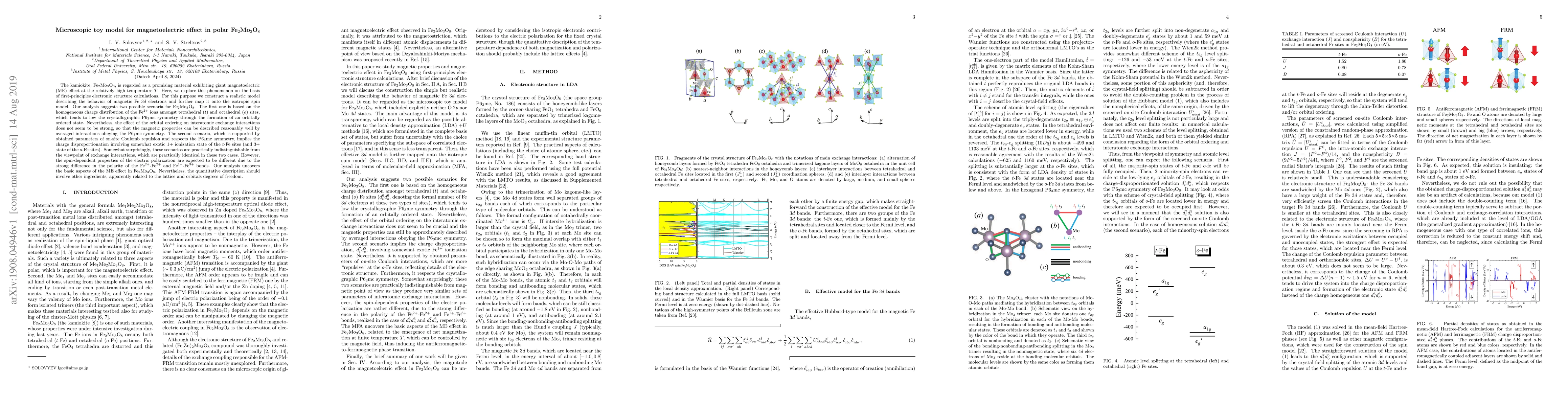 Researchers used first-principles calculations to explore the magnetoelectric effect in Fe2Mo3O8, a promising material exhibiting giant effects at relatively high temperatures. The analysis suggests two possible scenarios for the material's behavior, with surprising implications for its spin-dependent properties.